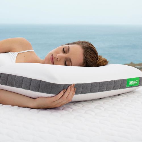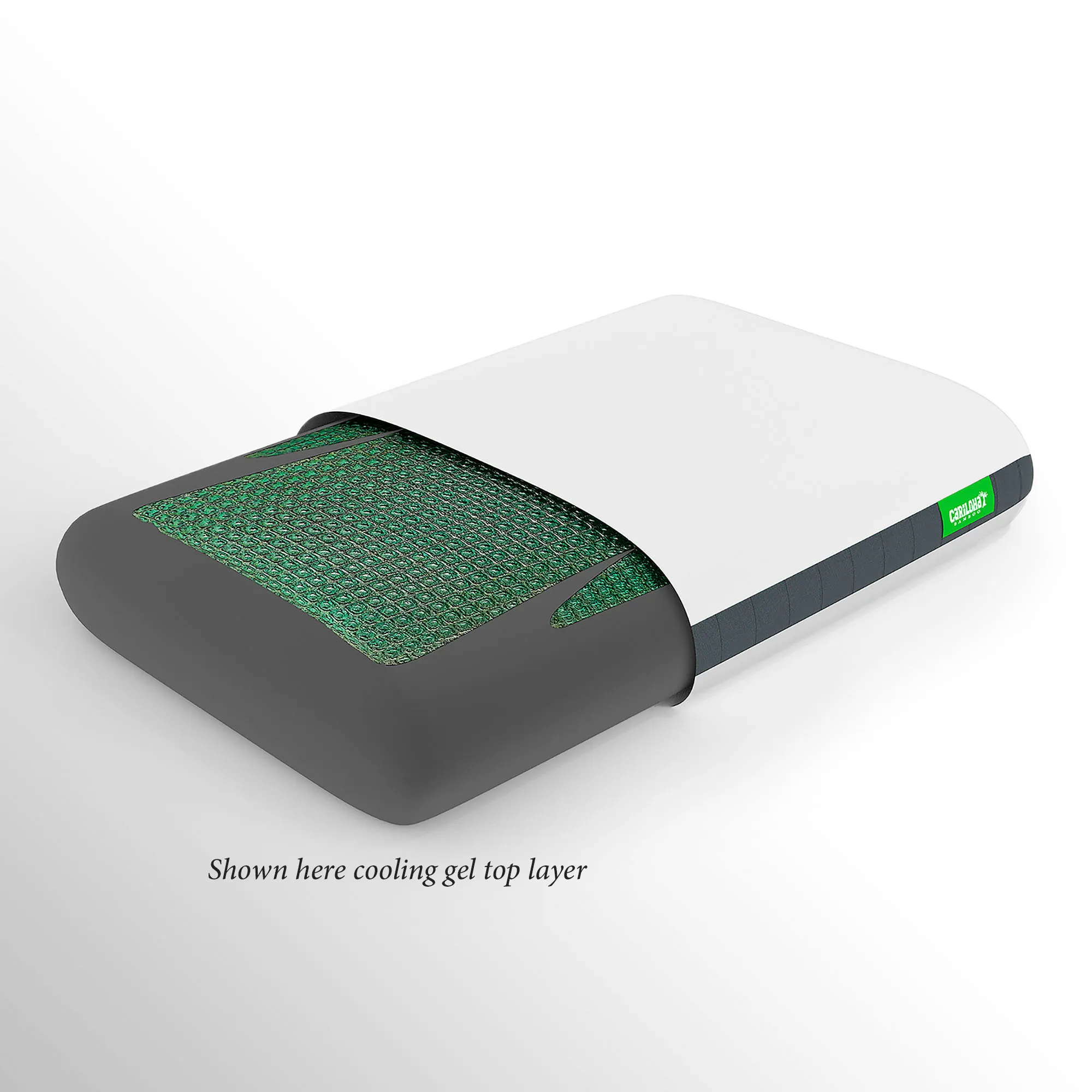 The Cariloha(TM) Gel Sleep Pillow whisks you away to your dreams on cool comfort. Perfect for those in warmer climates or who sleep hot, the medium-firmness bed pillow features a perforated bamboo charcoal memory foam insert with a cooling gel top layer. This gel layer provides additional cooling properties and helps regulate temperatures, while the breathable foam improves airflow and helps to retain shape and relieve pressure throughout the night. The hypoallergenic white polyester and bamboo-born viscose-blend cover has gray accent sides and a zipper closure. CertiPUR-US(R) certified. Standard Pillow is 27"x20". King Pillow is 36"x20". Machine wash the cover; spot clean the pillow. Imported.