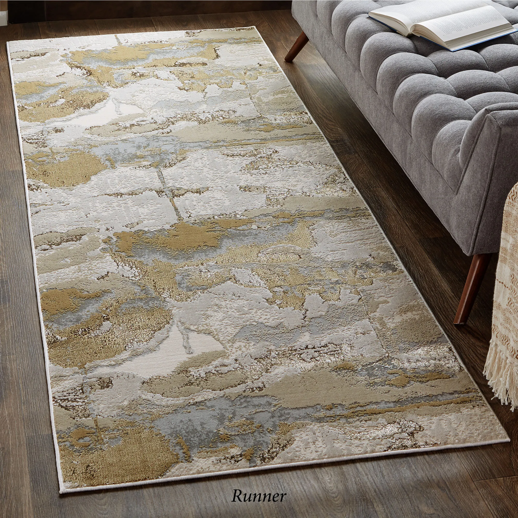 Carine Aura Beige Gray and Gold Abstract Area Rugs
