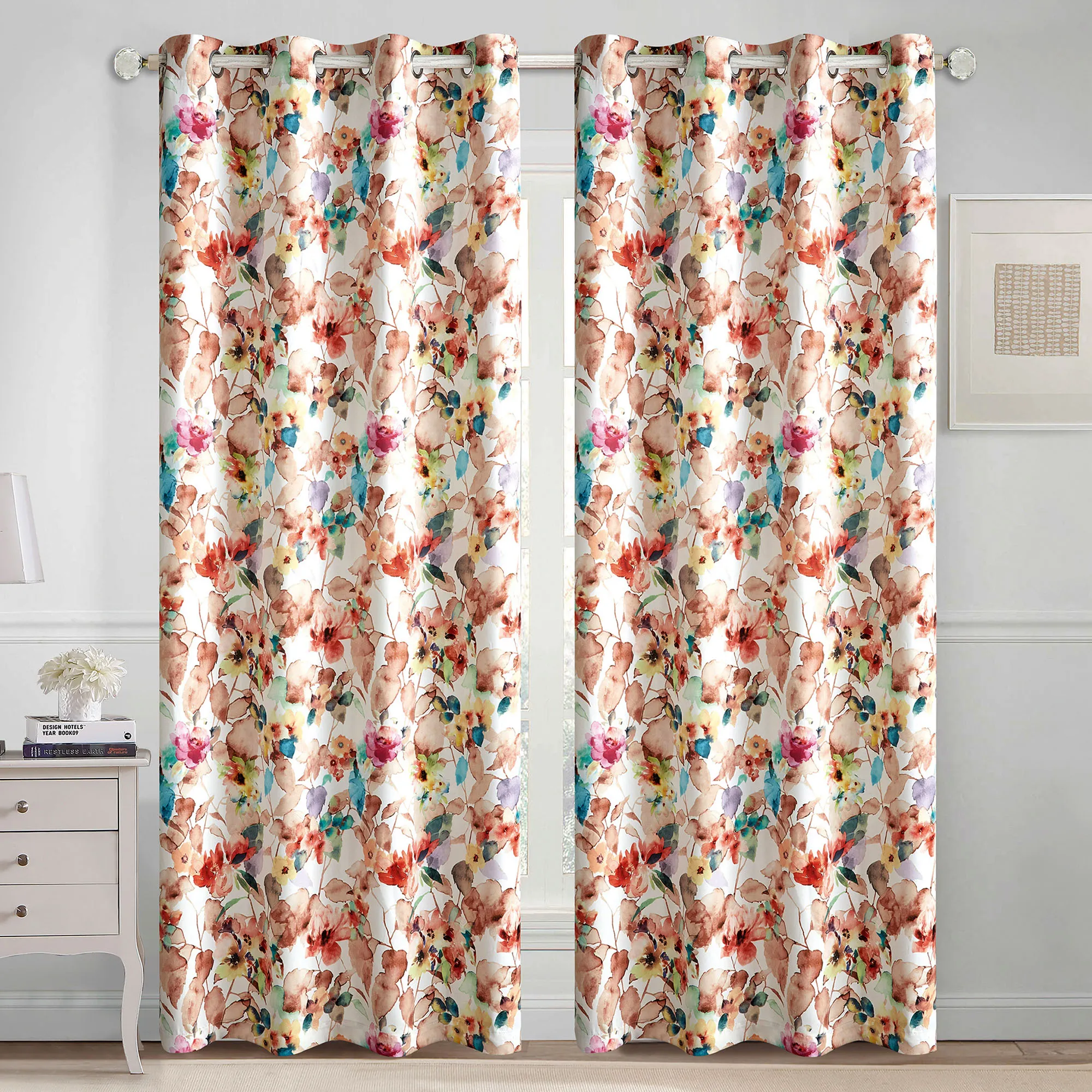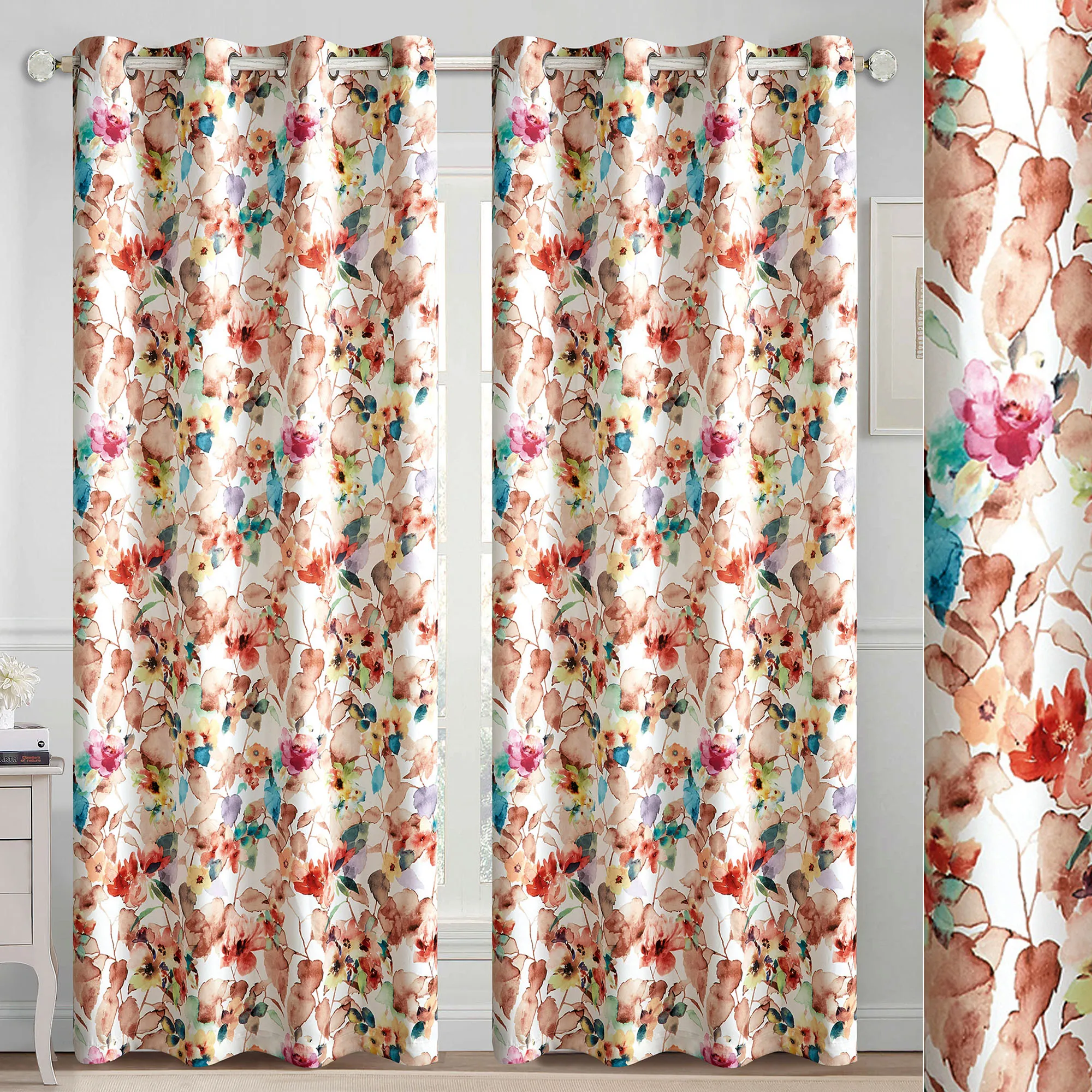 • Polyester floral curtain pair