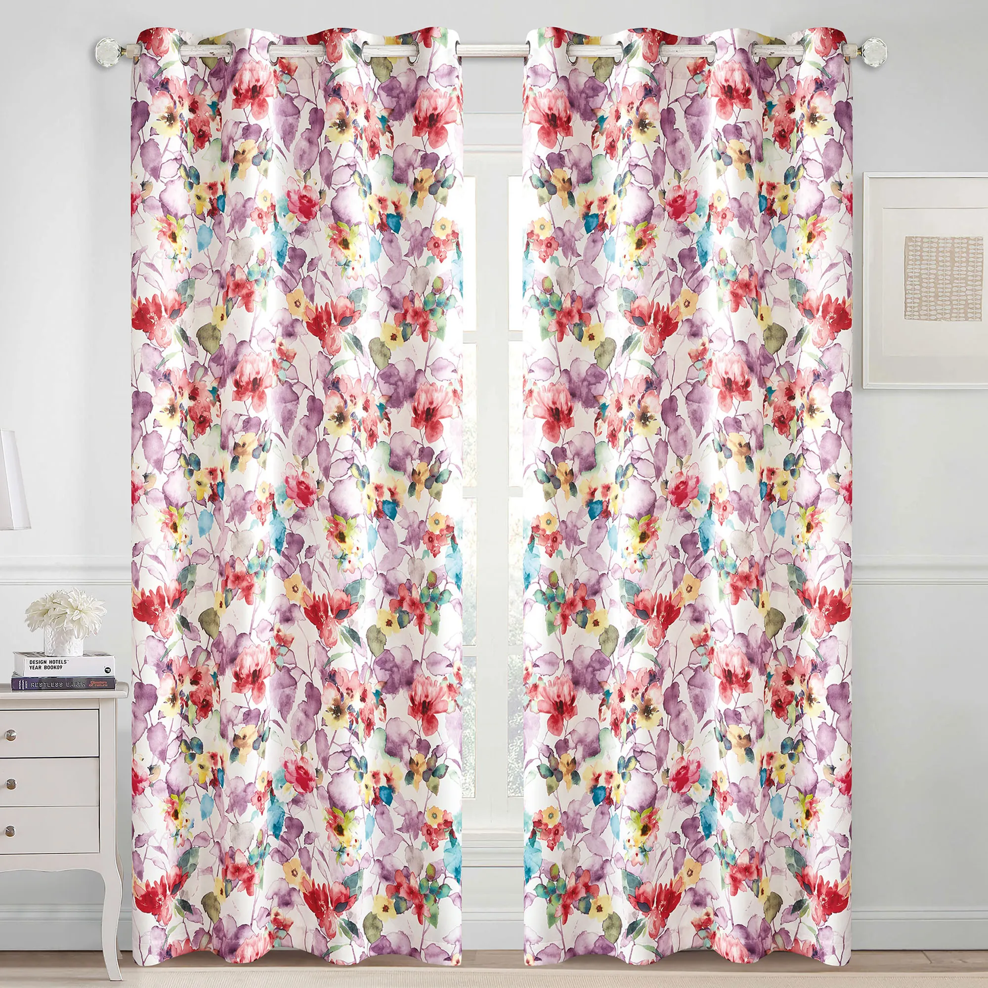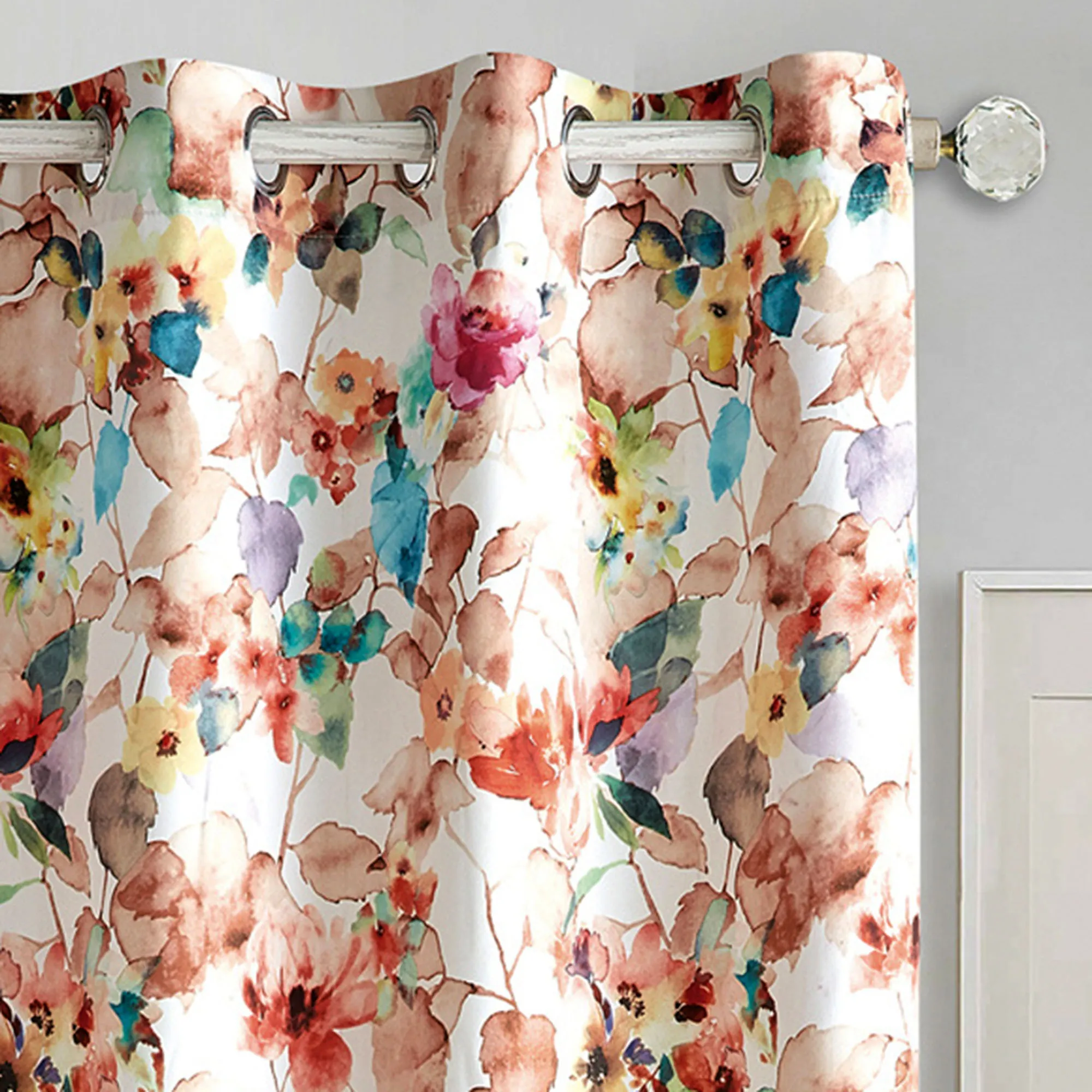 Carisbrook Watercolor Floral Wide Grommet Curtains
