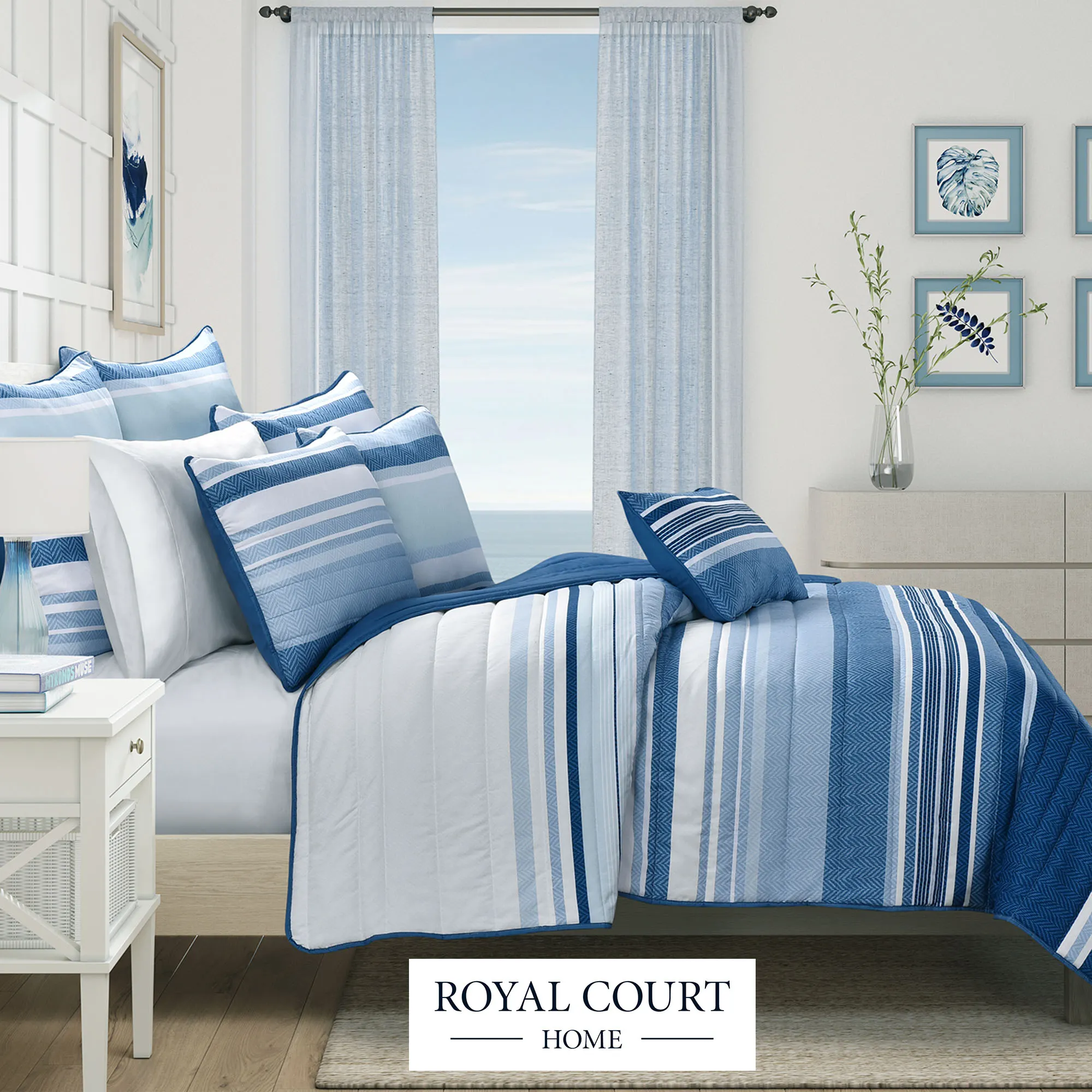Carson Blue and White Striped Quilt Set Bedding by Royal Court