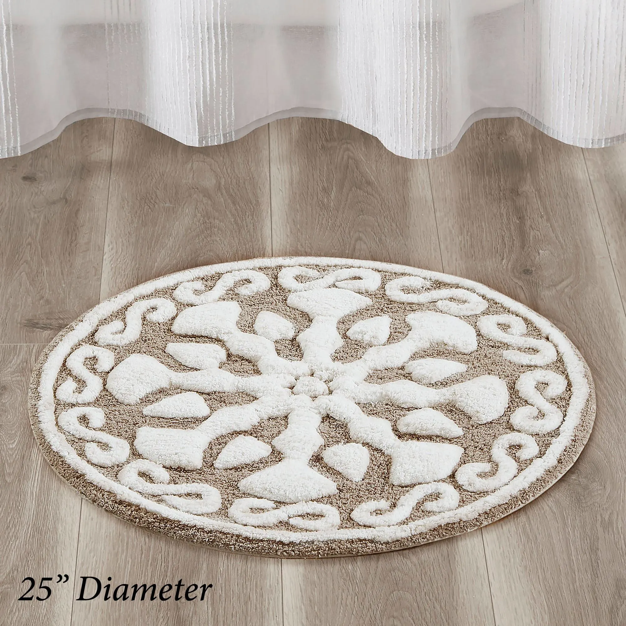 Casablanca Medallion Round Bath Rug Taupe 25" Dia