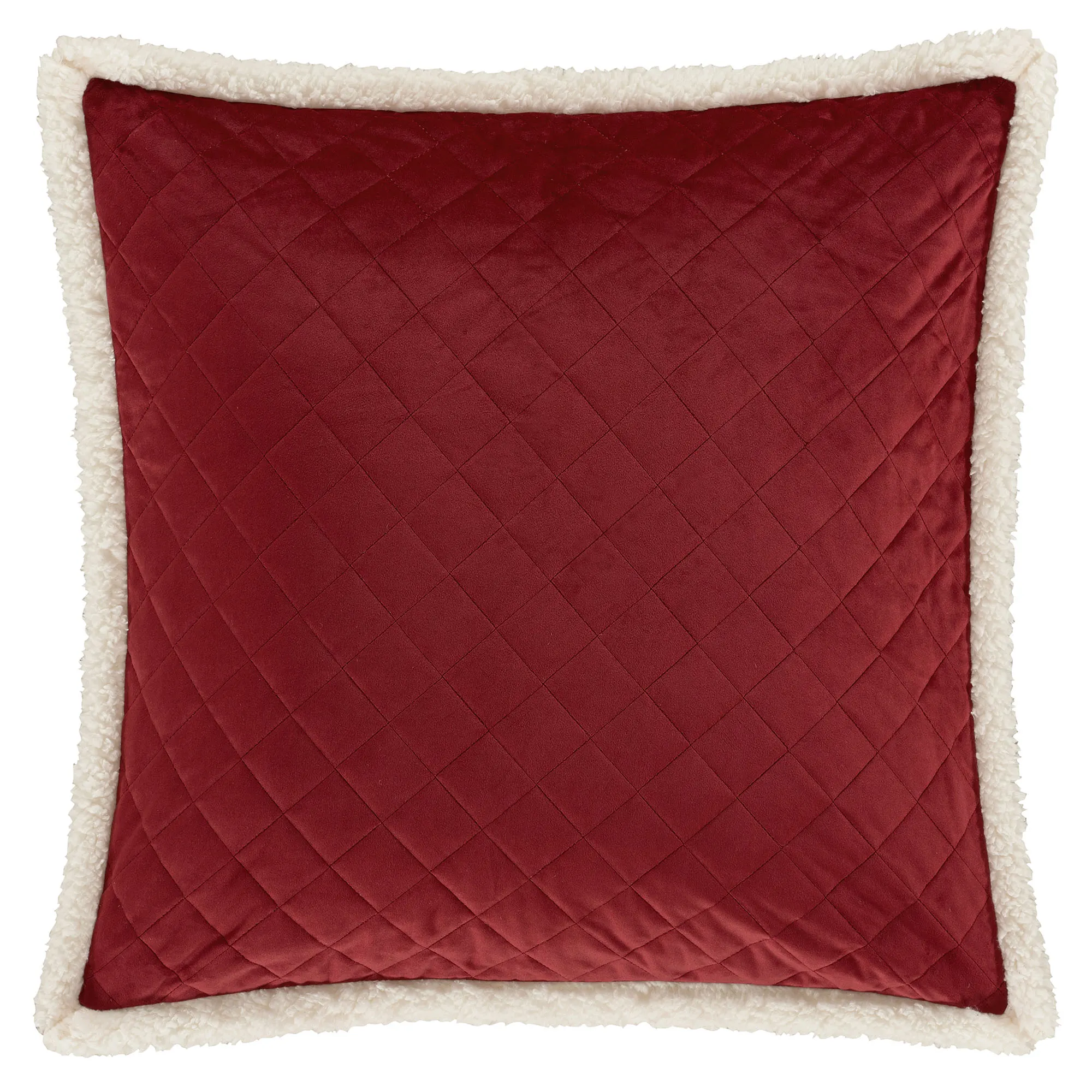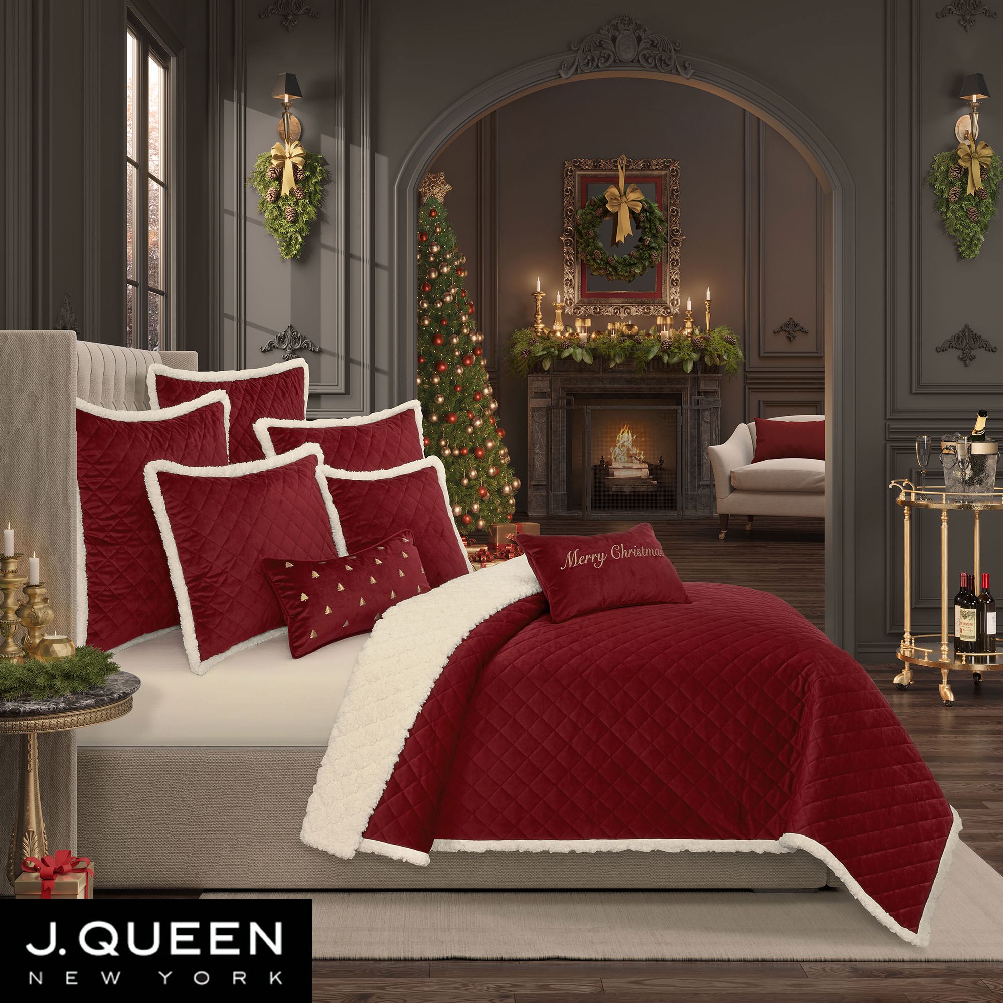 Decorate for the holidays with the luxuriously elegant Casey Crimson Bedding. This beautiful, solid crimson, polyester velvet ensemble, from J. Queen New York, features an elaborate, diamond quilt pattern and ivory sherpa accents.