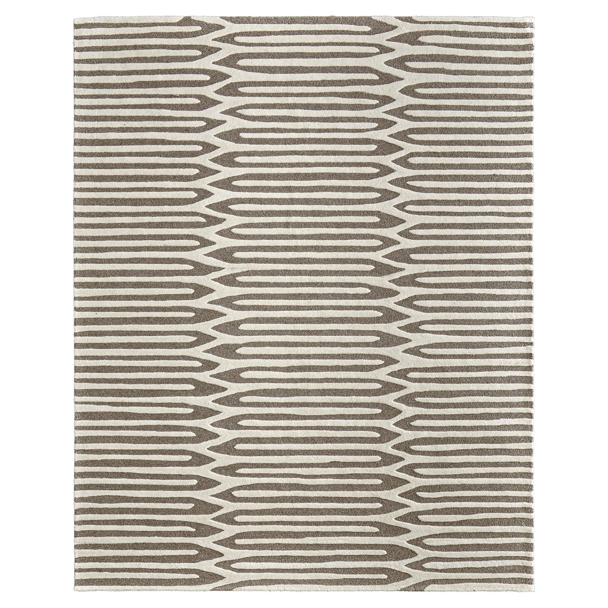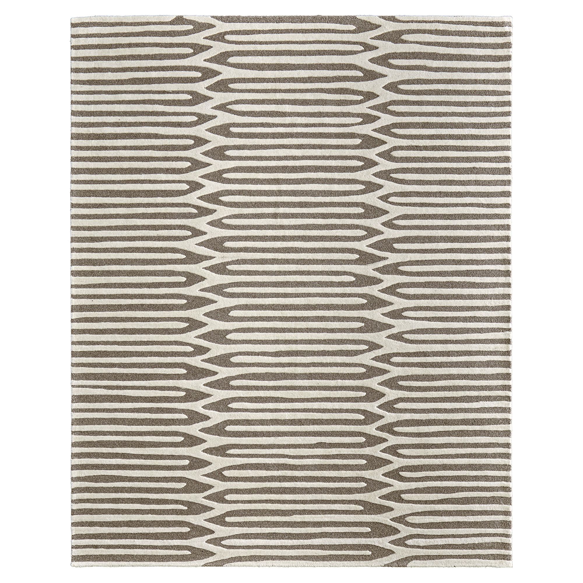 The Casimir Area Rug exudes a luxurious style with modern appeal. Hand-hooked from wool, the .67" thick rug features a geometric linear design that adds an inviting hi-low texture. The neutral tones of ivory and taupe complement a variety of styles and add contrast to the abstract styling. Backing is cotton. We recommend professional cleaning by a rug cleaner. Imported.