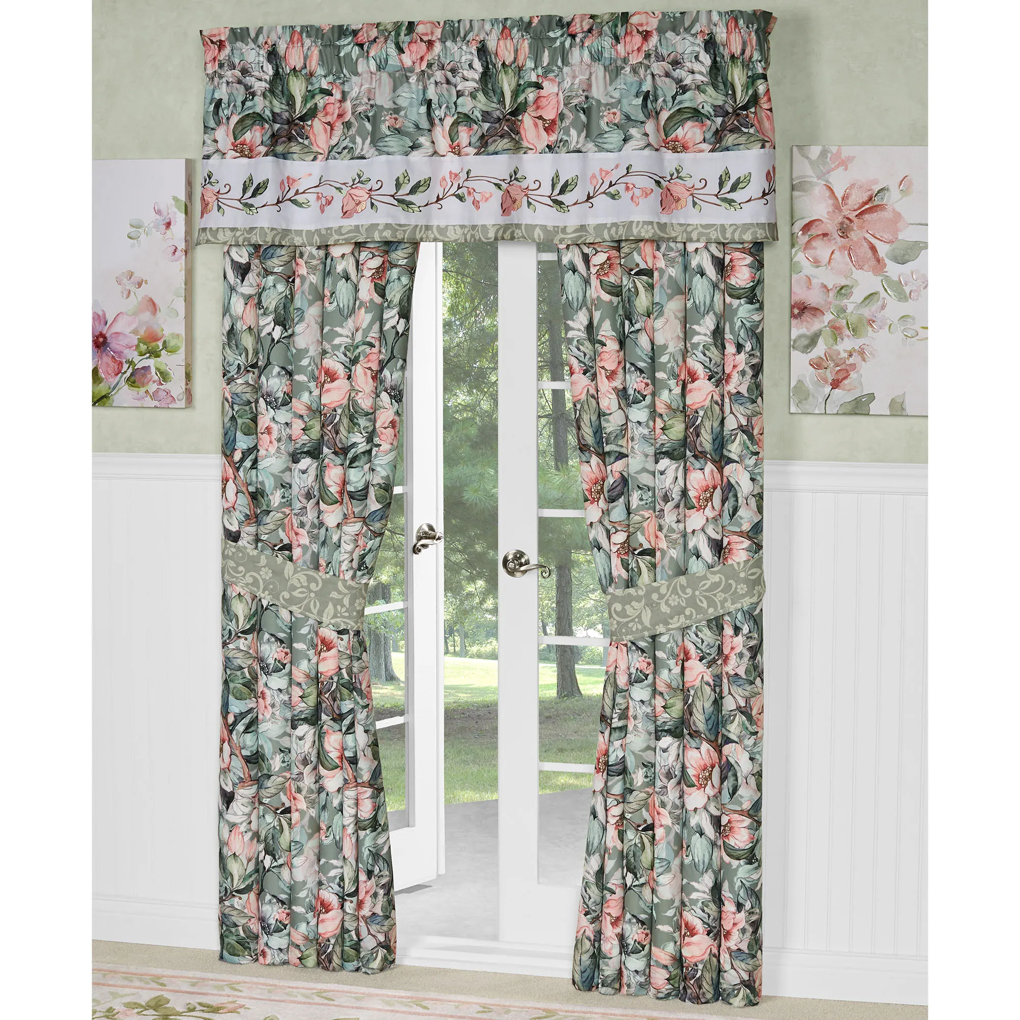 The Catalina Floral Window Treatment is brushed polyester. Valance has cotton trim. Imported.