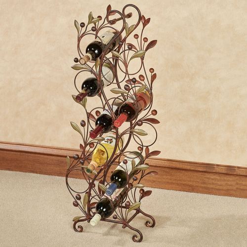 The Catalonia Sage Leaf Floor Wine Rack adds the perfect traditional touch to your home while holding your favorite wines. With a lovely scrolling design, the handcrafted metal wine rack features handpainted rustic brown vining branches with olives and sage leaves that surround holders for your 10 bottles of wine. Floor wine bottle rack measures 14"Wx6.5"Dx36.5"H.
