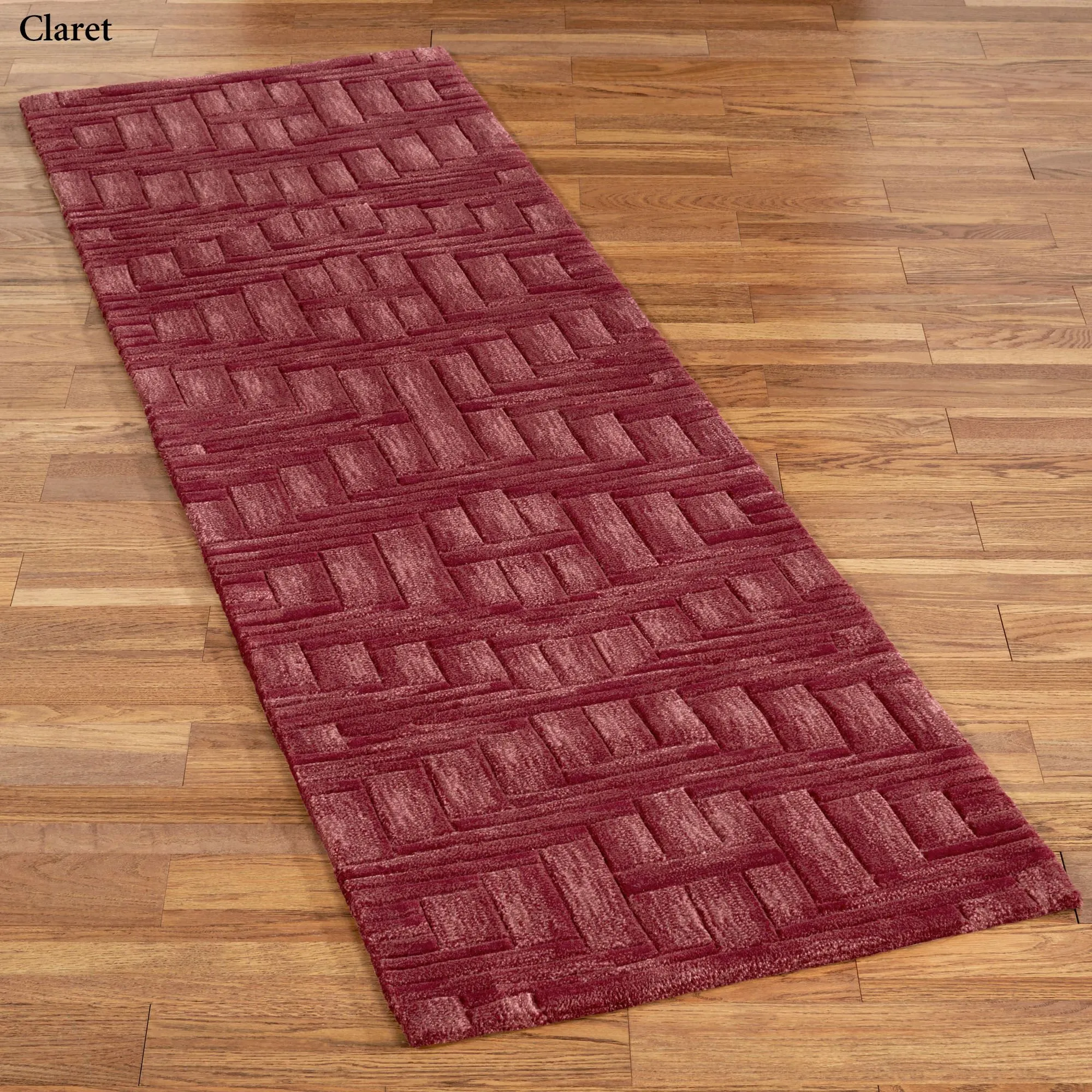 The Caydon Rug Runners add visual interest with their intriguing tone-on-tone basket weave designs. These handcarved polyester rugs are hand-tufted and have cloth-covered latex backing. Choose Onyx, Chocolate, Claret, Sage, or Sand. We recommend professional cleaning by a rug cleaner. Imported.