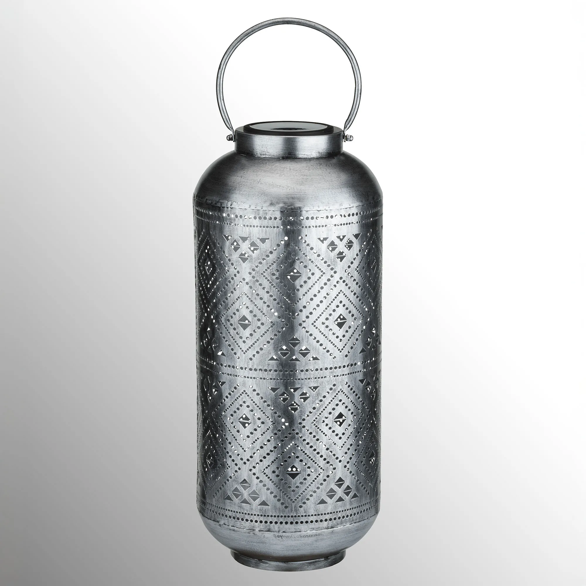 Celestial Antique Silver Metal Solar Shadow Silhouette LED Outdoor Lantern