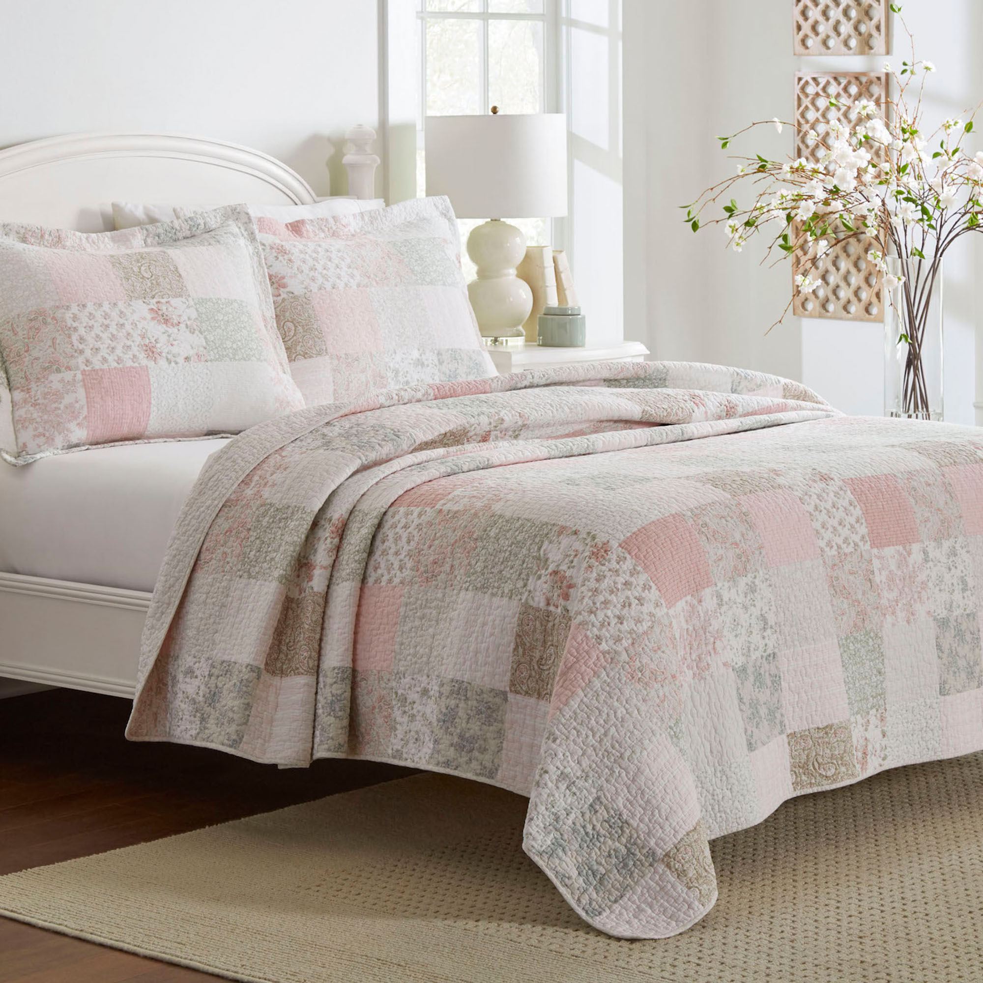 Celina Pastel Pink and Green Floral Block Mini Quilt Set Bedding by Laura Ashley