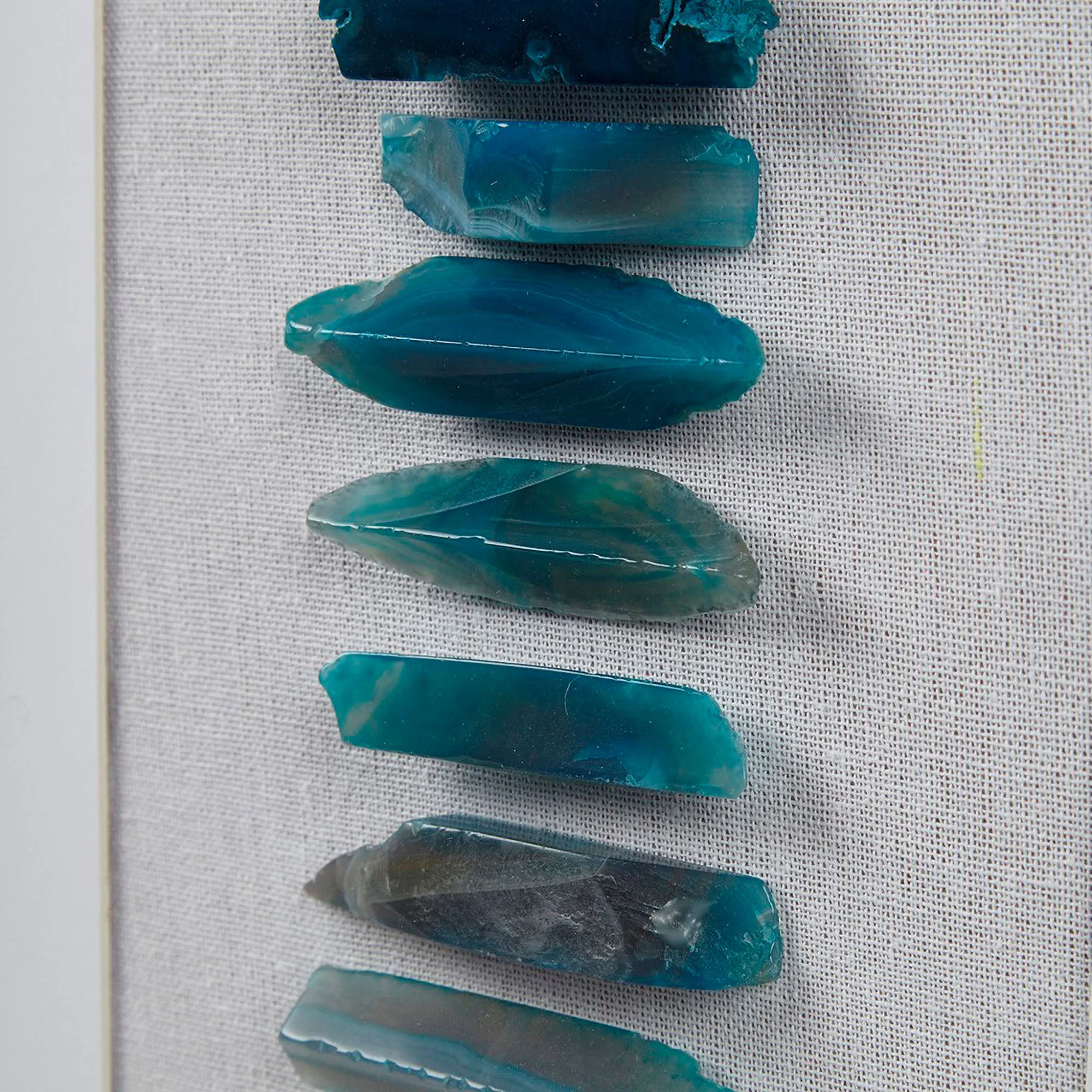 The Cerulean Agate Wall Art is made from agate stone, polystyrene, and glass.
