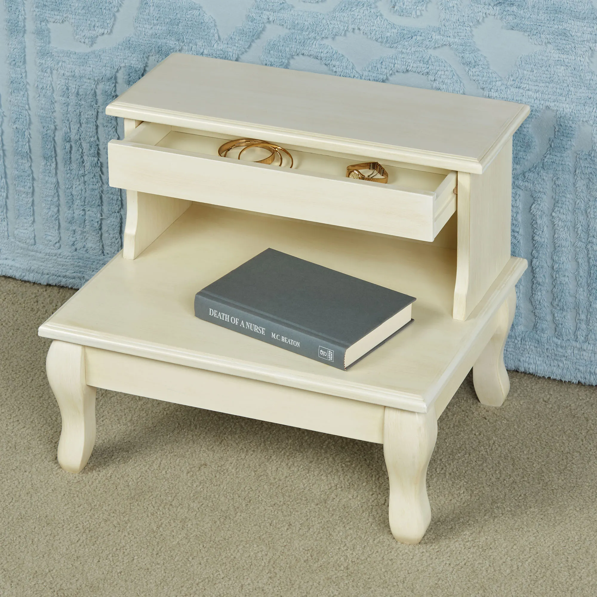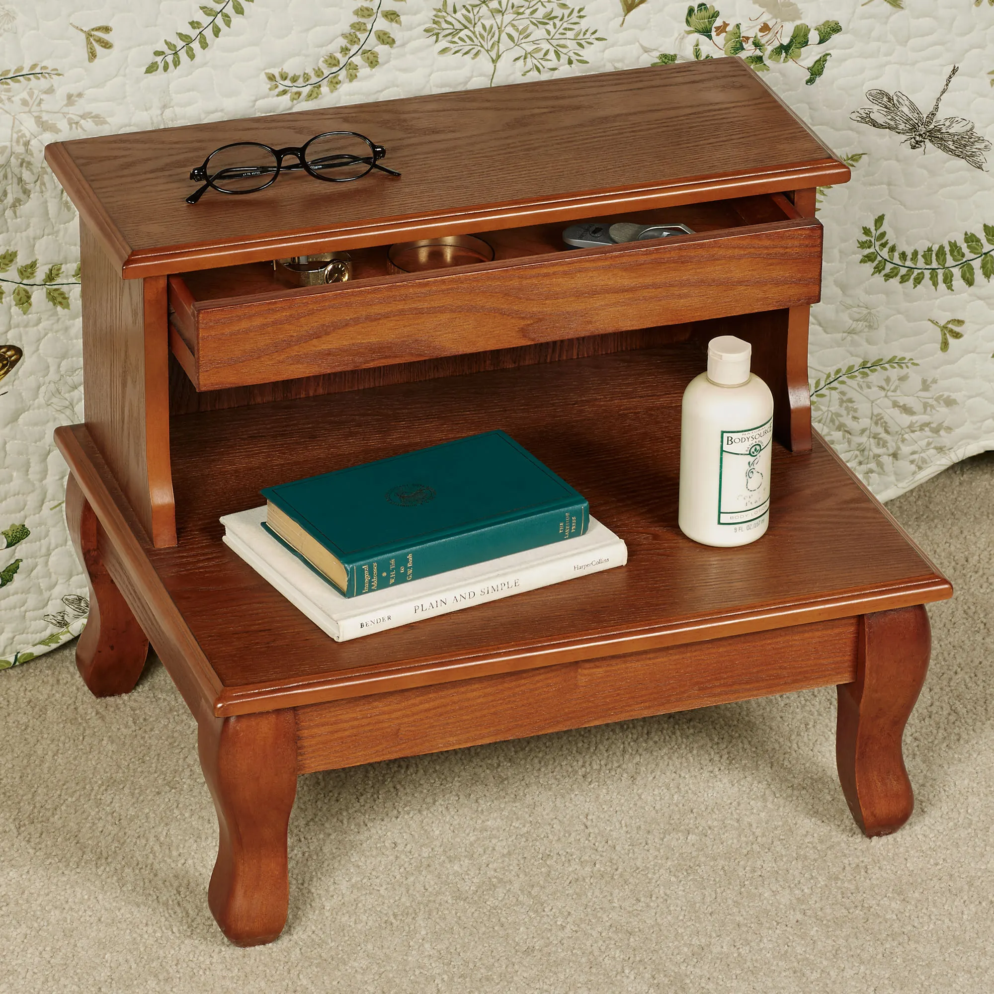 The Cessilee Bed Steps are a convenient and practical accent for your bedroom. Wooden bed steps feature a hidden drawer for storage of your small notepads, pens, or other personal items. Cabriole-style legs complete this traditional design. Drawer is 15.5"Wx4.5"Dx1.5"H. Overall, bed steps are 19"Wx15"Dx16"H; weighs 16 lbs.