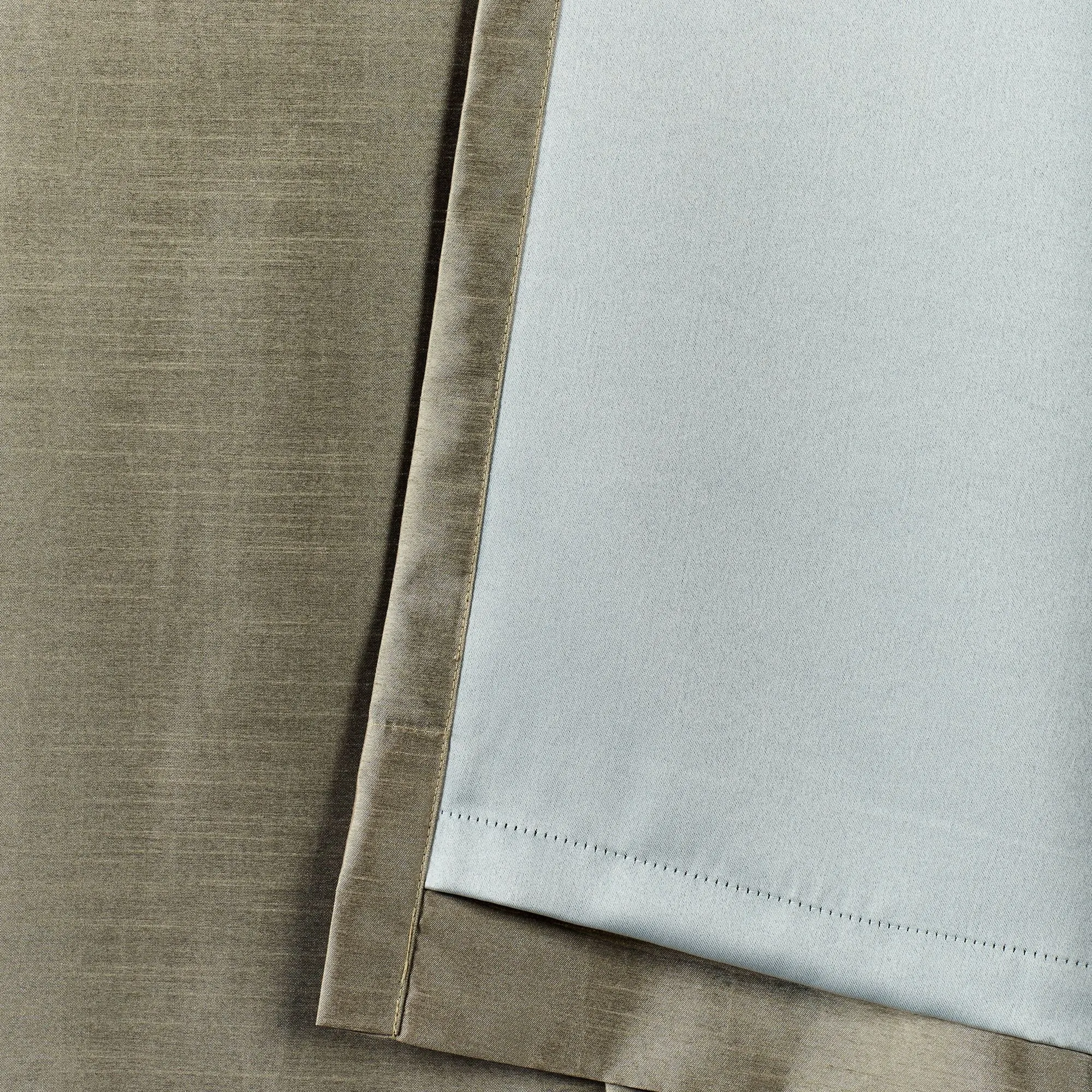The Chamberlain Wide Patio Panel complements your home with a classy faux silk look. This pinch-pleat, solid color polyester patio panel is woven with a layered design that sandwiches black yarns between a tight weave of colored yarns to darken a room and reduce noise. This lined, energy-efficient panel can be hung with the hidden 3" back tabs or your 22 drapery pins or clip rings. Wide patio panel is 120"Wx84"L. Machine washable. Imported.