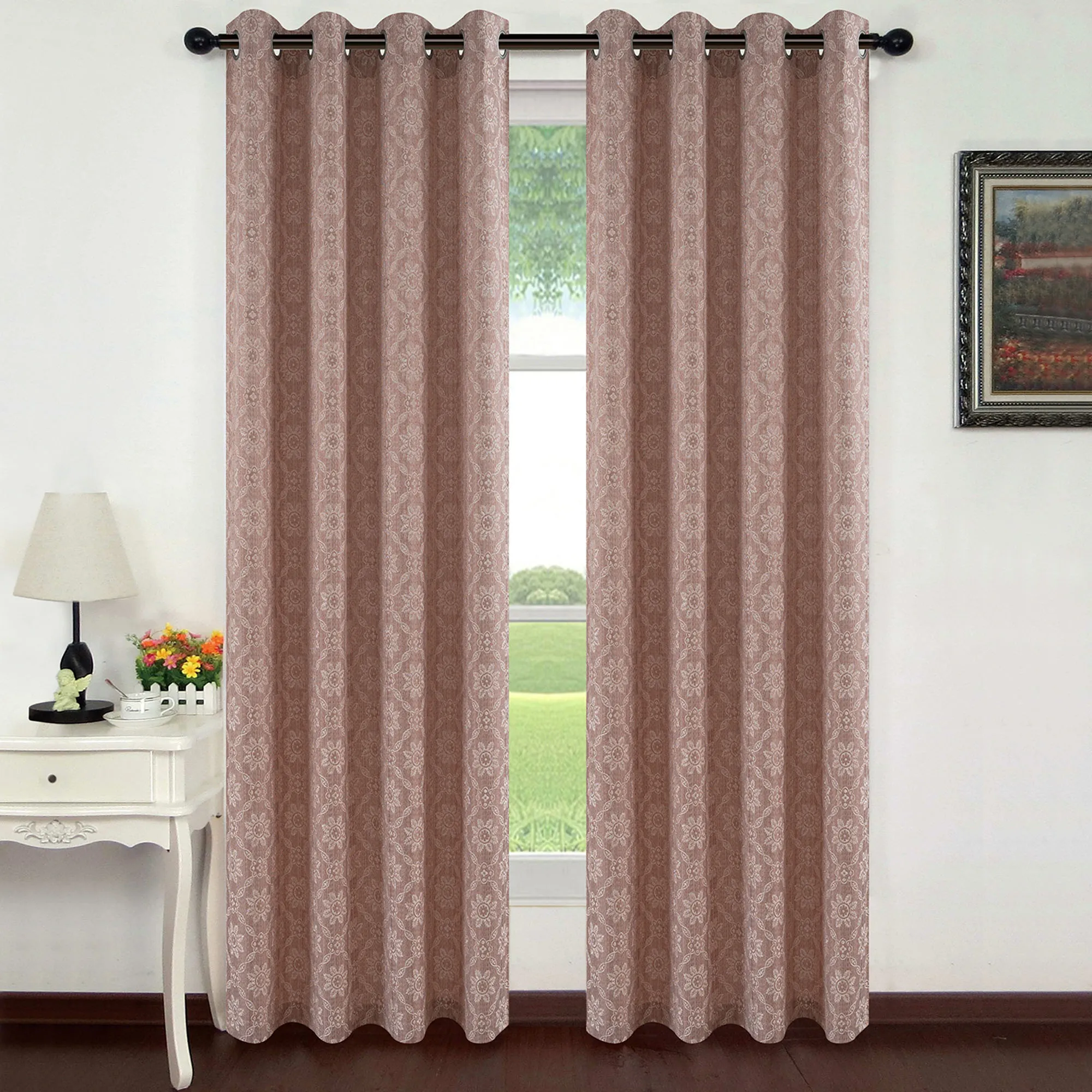 Chambley Floral Medallion Wide Grommet Curtain Pair