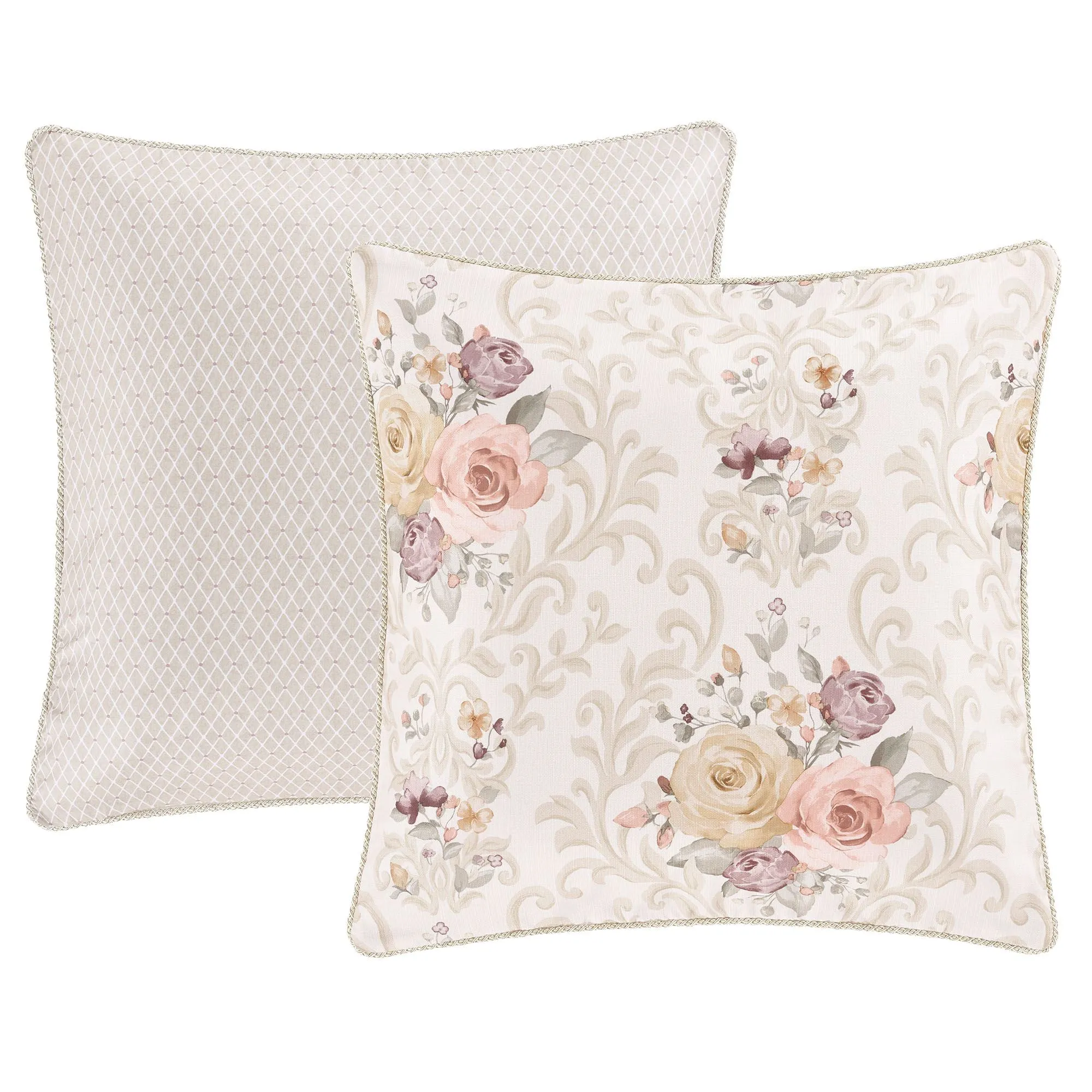 Pillows: Spot clean. The corded Square has a nature motif and reverses to a diamond and dot print. The Rectangle has floral embroidery, pintucks, and twist cording.