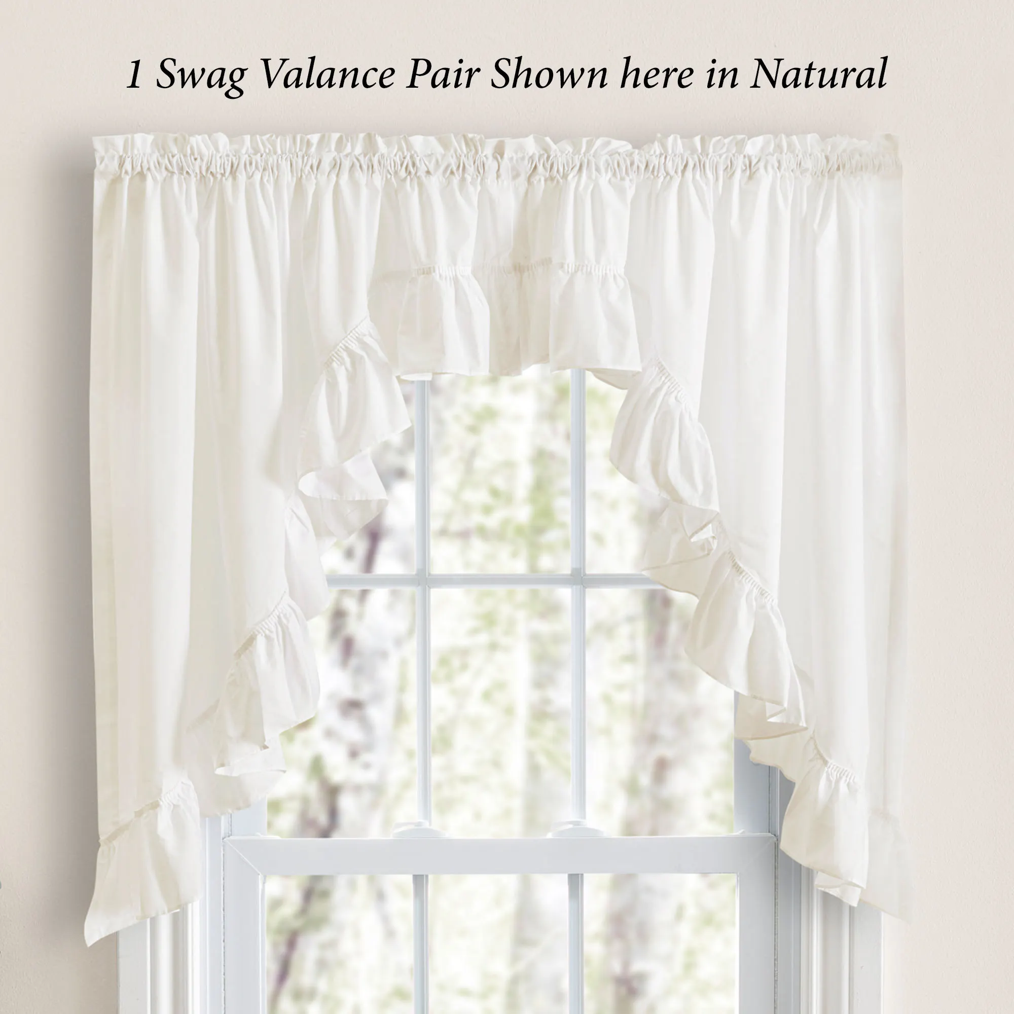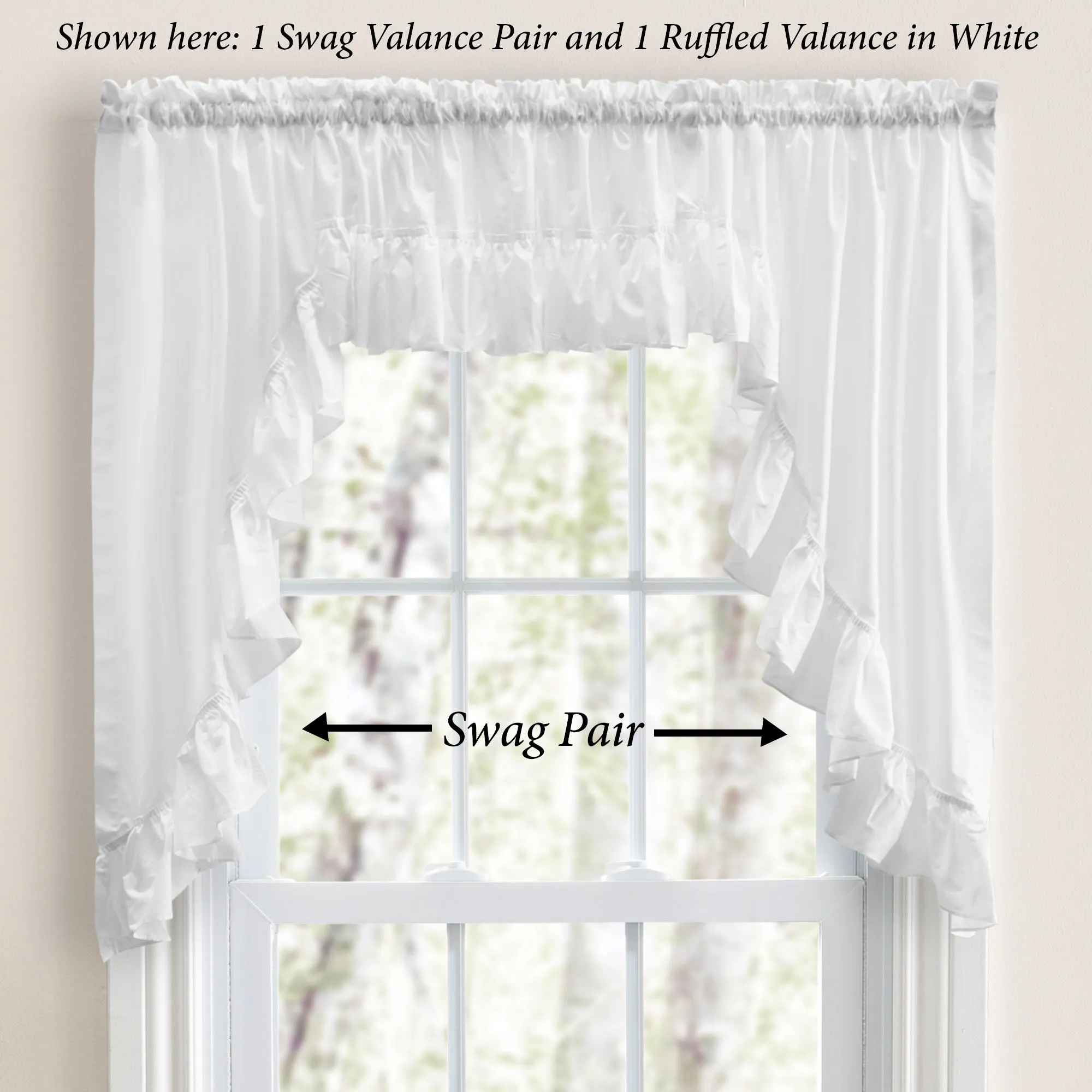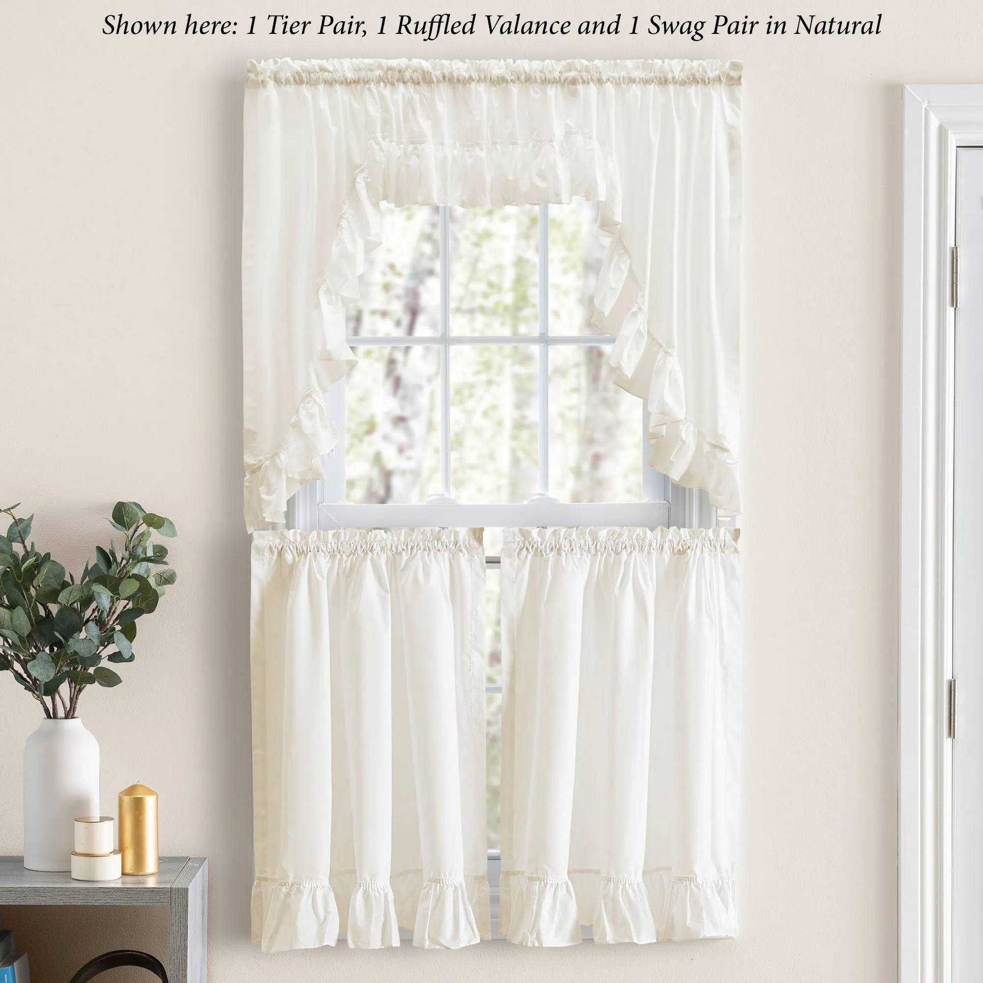 • Shown: 1 Swag Pair & 1 Ruffled Valance over 1 Tier Pair