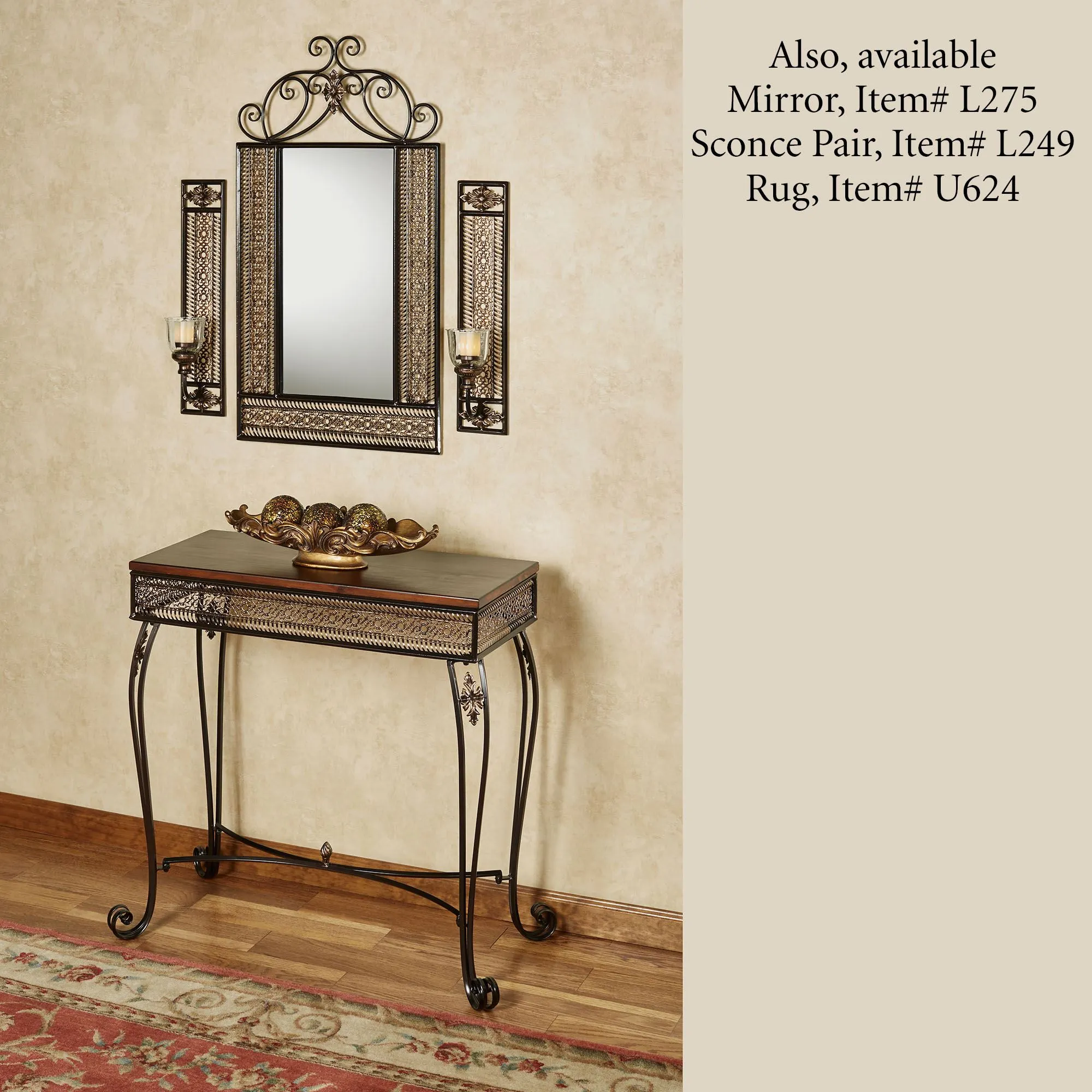 The Charleston Scroll Wall Mirror is metal and glass.