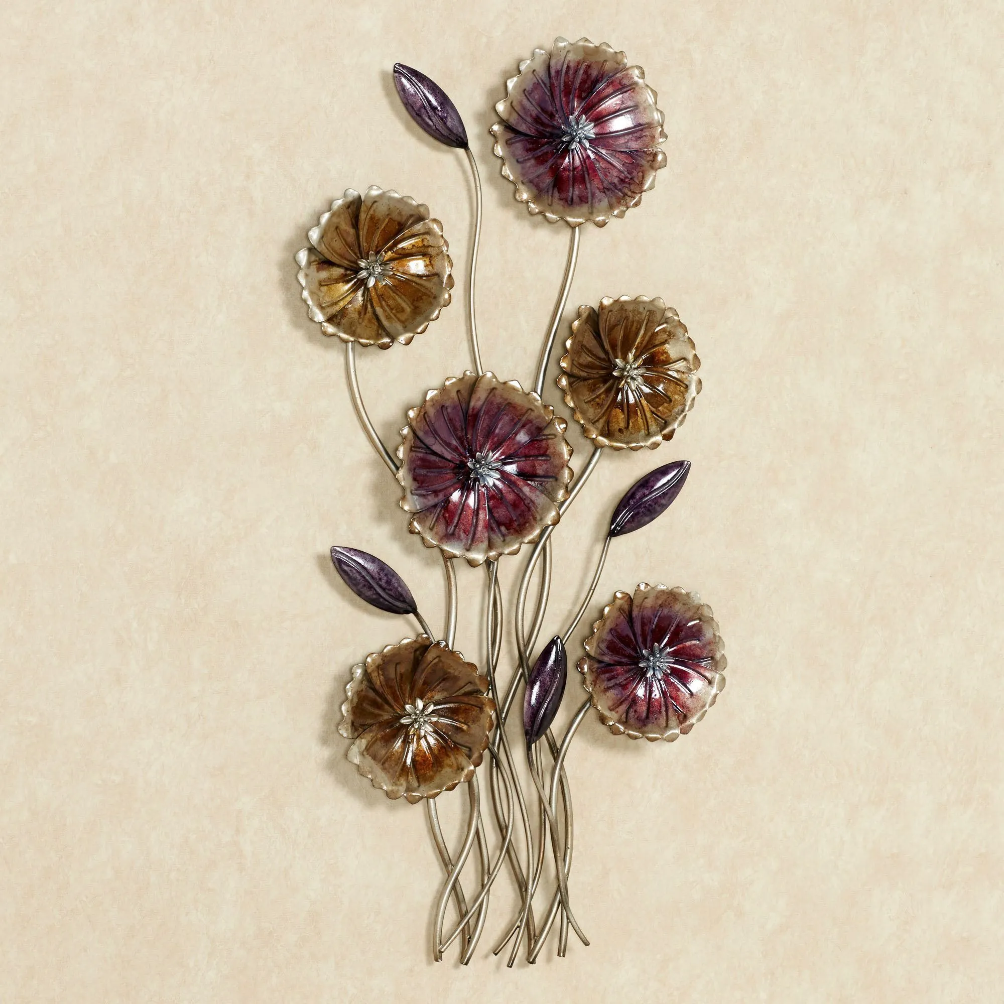 Let your home blossom with compelling grace when you display the Charming Floral Wall Art. Metal wall art features champagne gold stems supporting purple buds with sangria and gold blooming flowers with silver centers. Floral wall art measures 12.5"Wx1.5"Dx27"H.