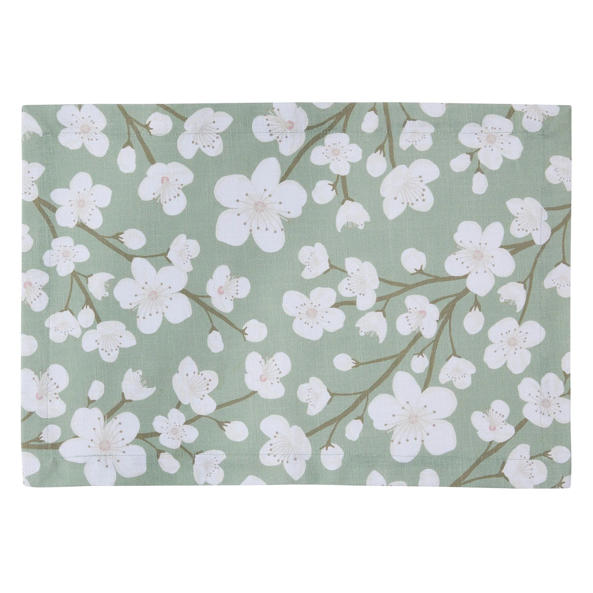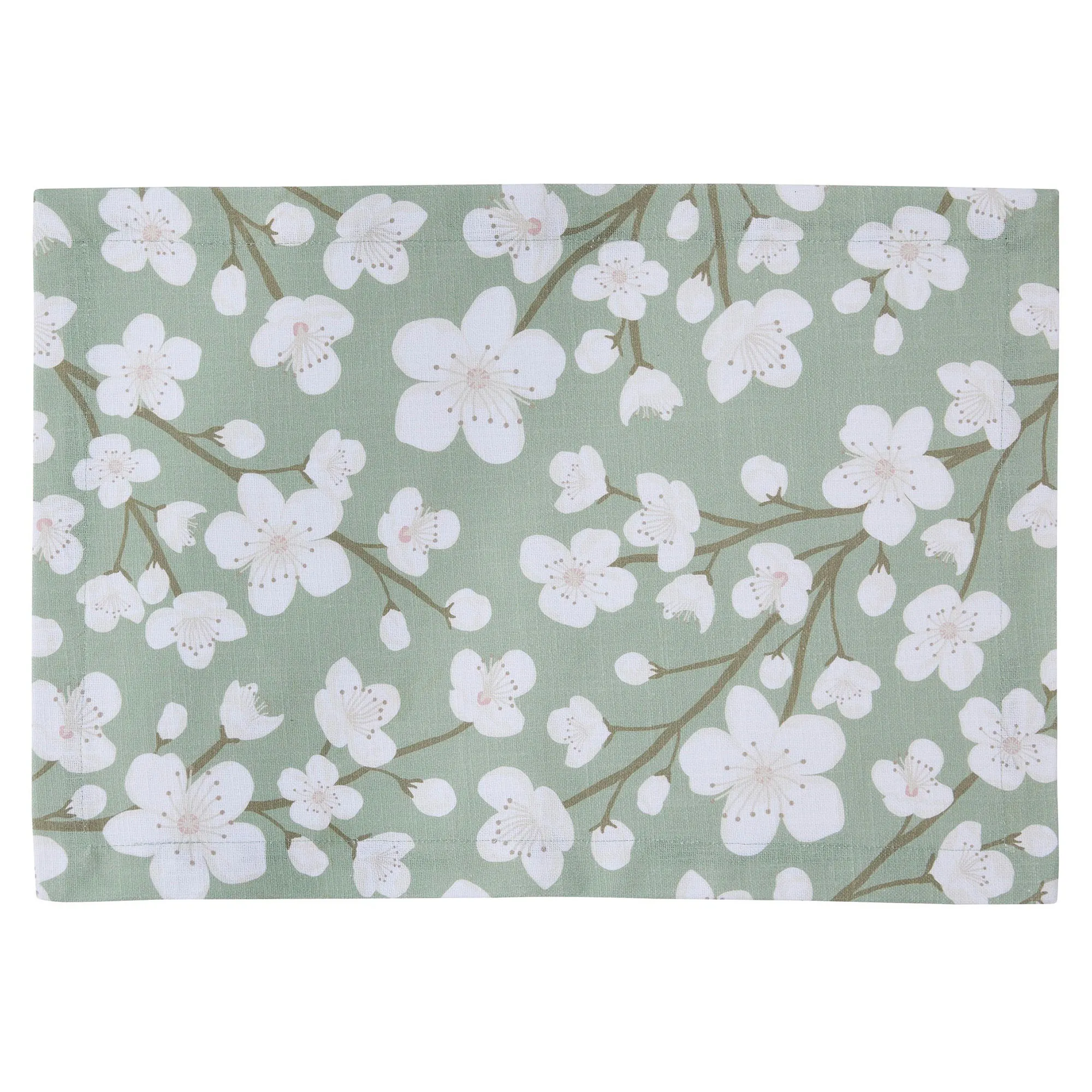 Cherry Blossom Floral Sage Green Cotton Table Linens