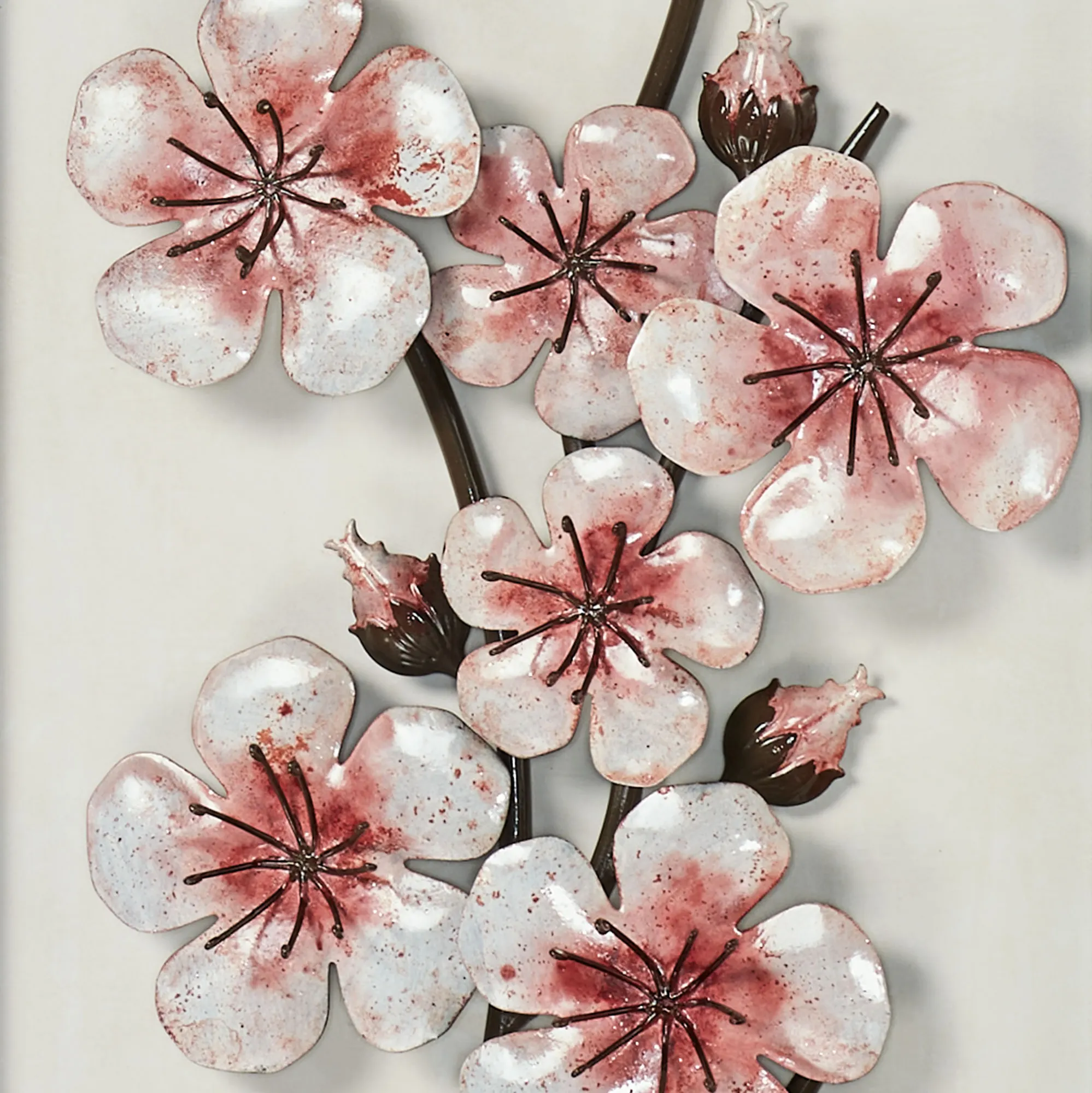 Cherry Blossom Pink Floral Metal Wall Art Panel Set