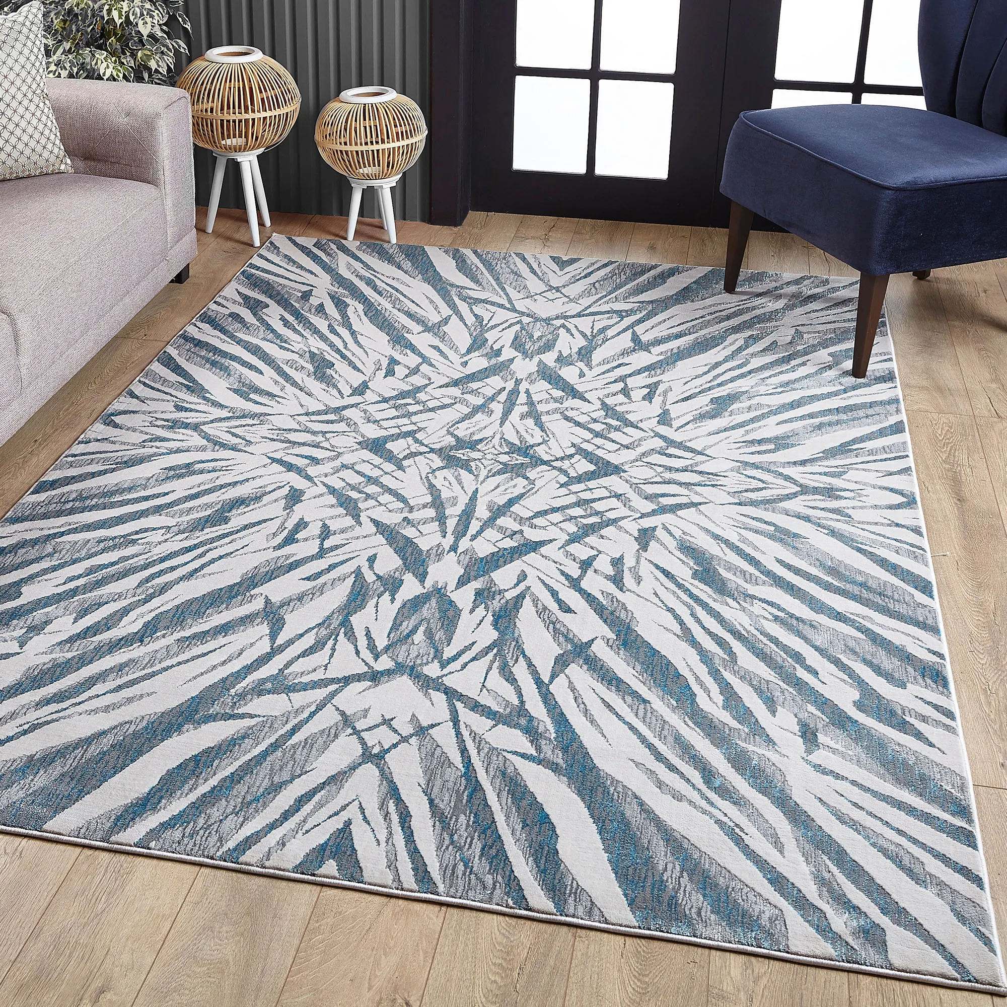 Chesney Blue Burst Design Contemporary Abstract Area Rugs