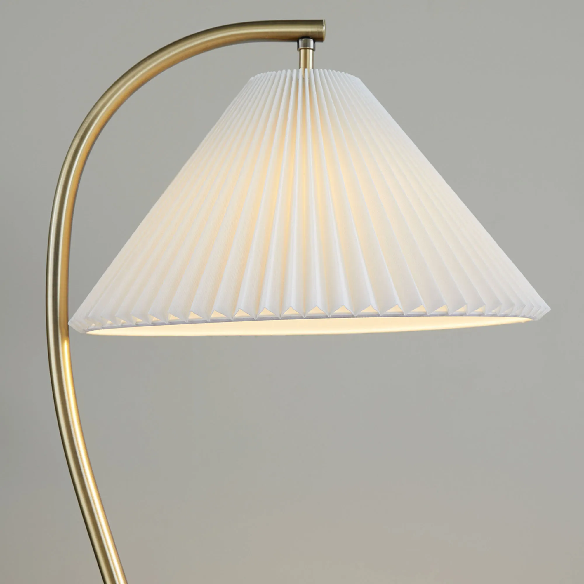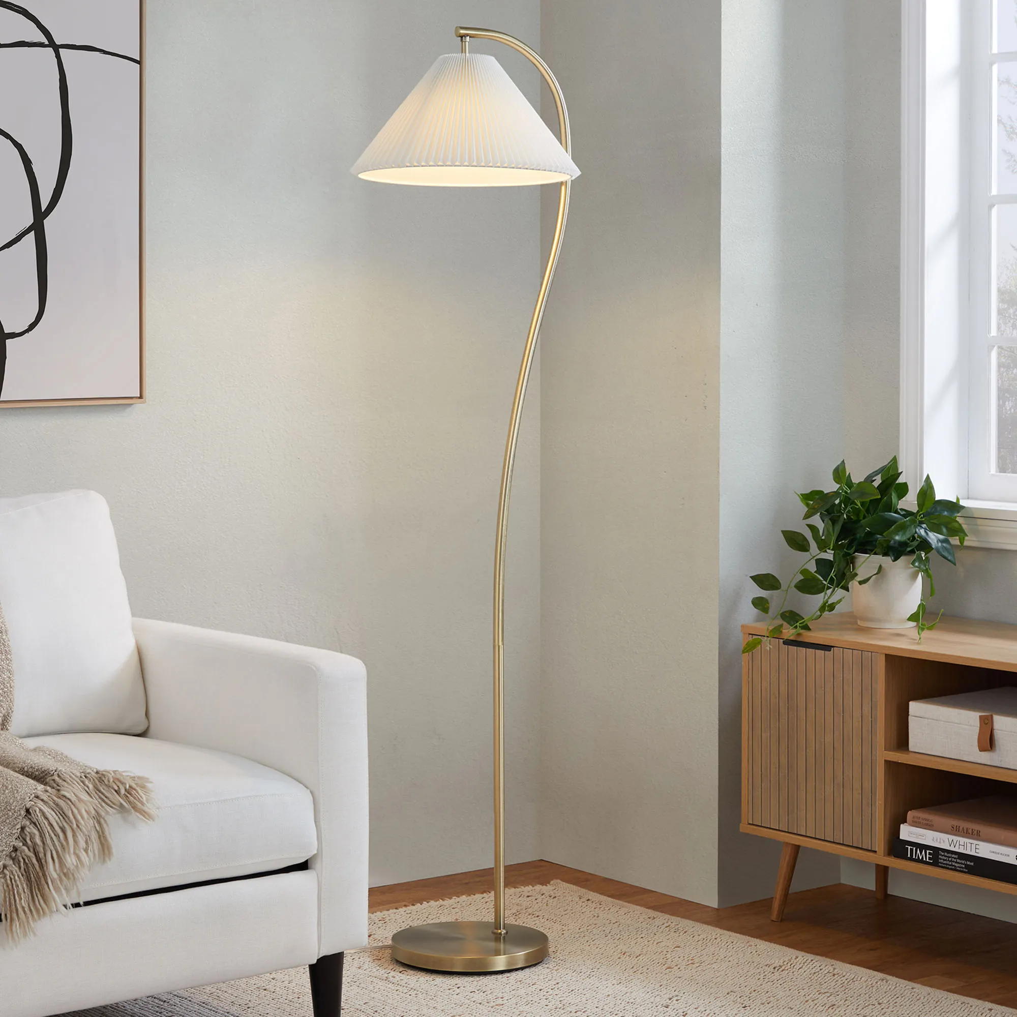 Christiana Gold Metal Curving Floor Lamp with Off White Pleated Shade