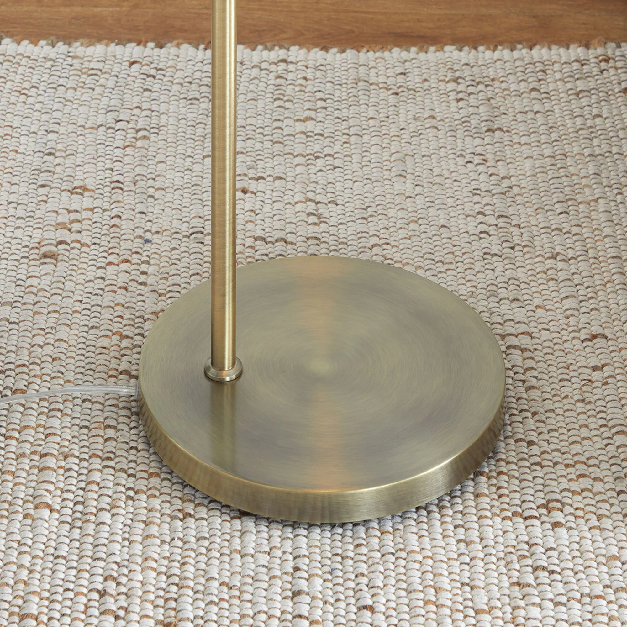 The Christiana Floor Lamp shines with classic charm. With a lovely gold finish, the metal floor lamp features a round metal base, softly curving neck, and pleated off-white linen empire shade. UL listed. Requires one 40W max. bulb that operates via an in-line foot switch. Overall, the uniquely styled floor lamp measures 16"Wx17.5"Dx65"H and weighs approx. 10 lbs.