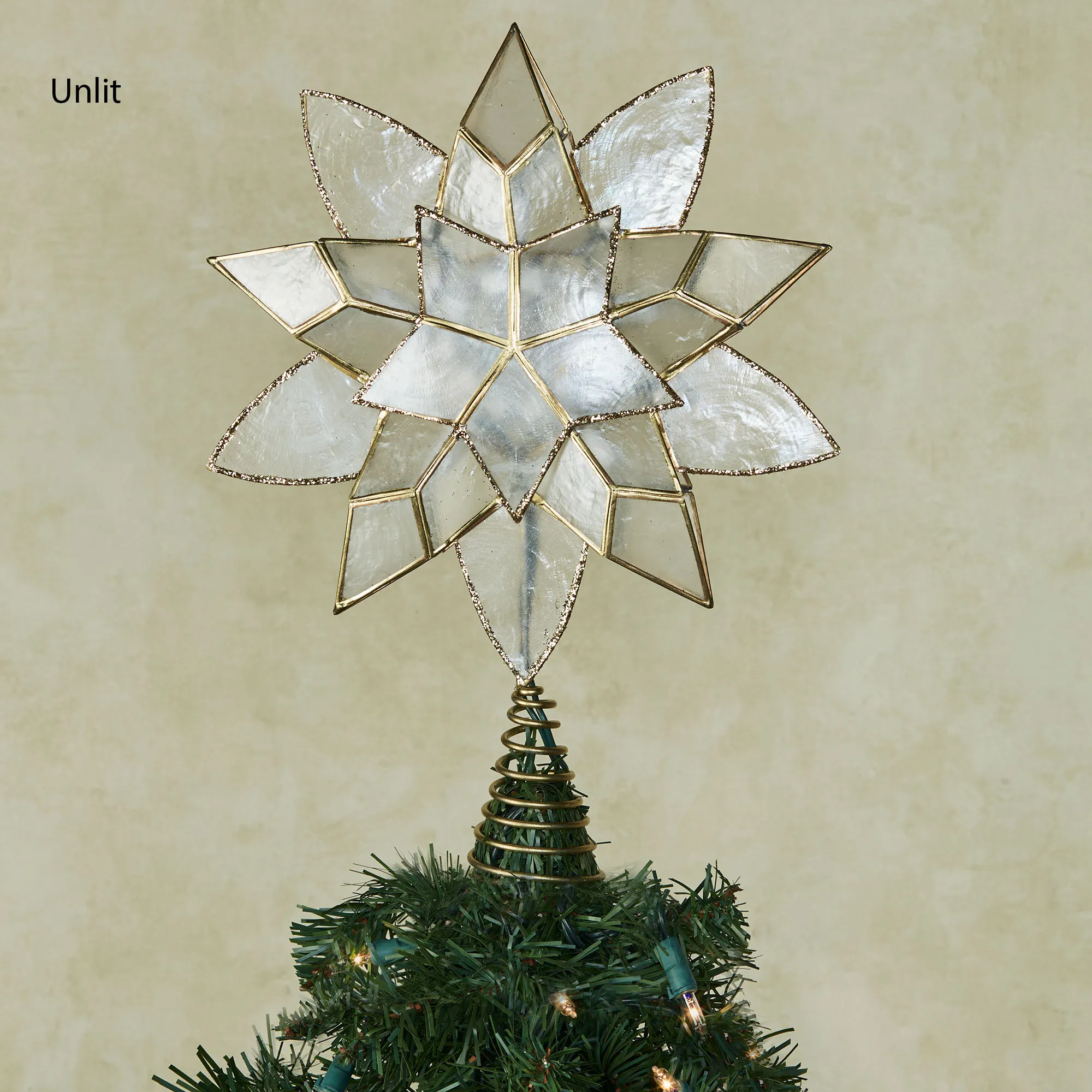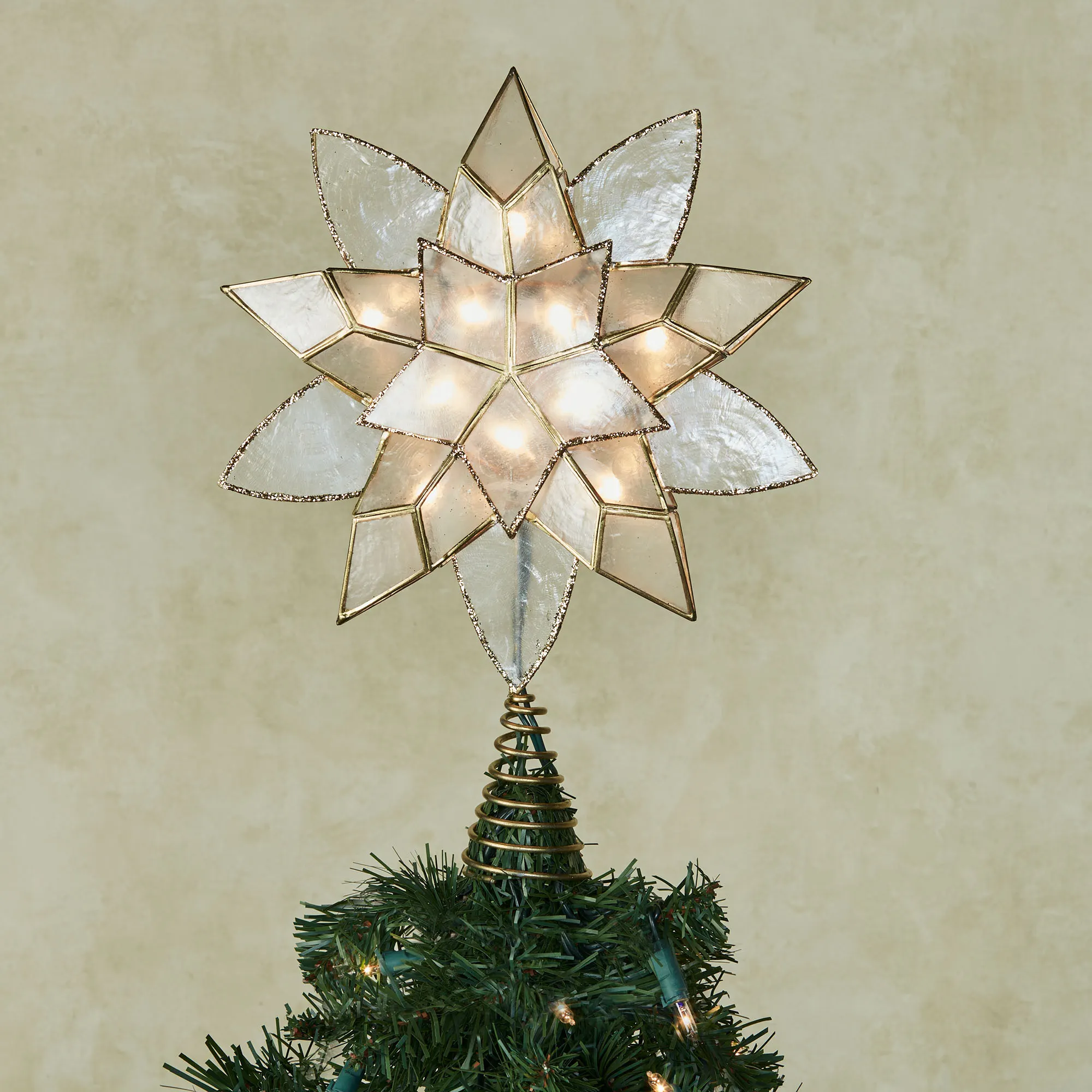 The Christmas Capiz Lighted Tree Topper is capiz shell and metal.