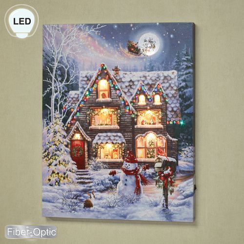 • Charming lighted Christmas canvas wall art