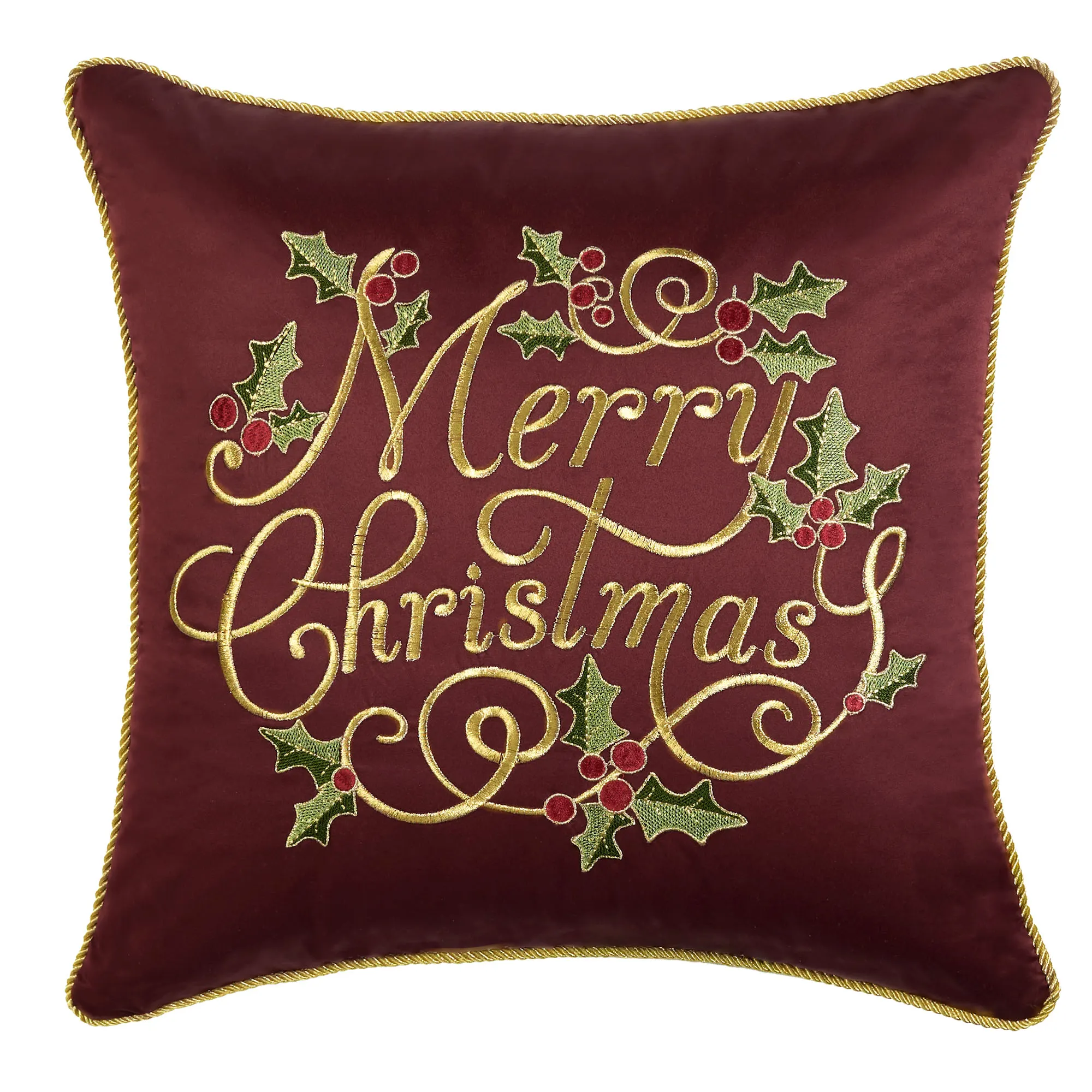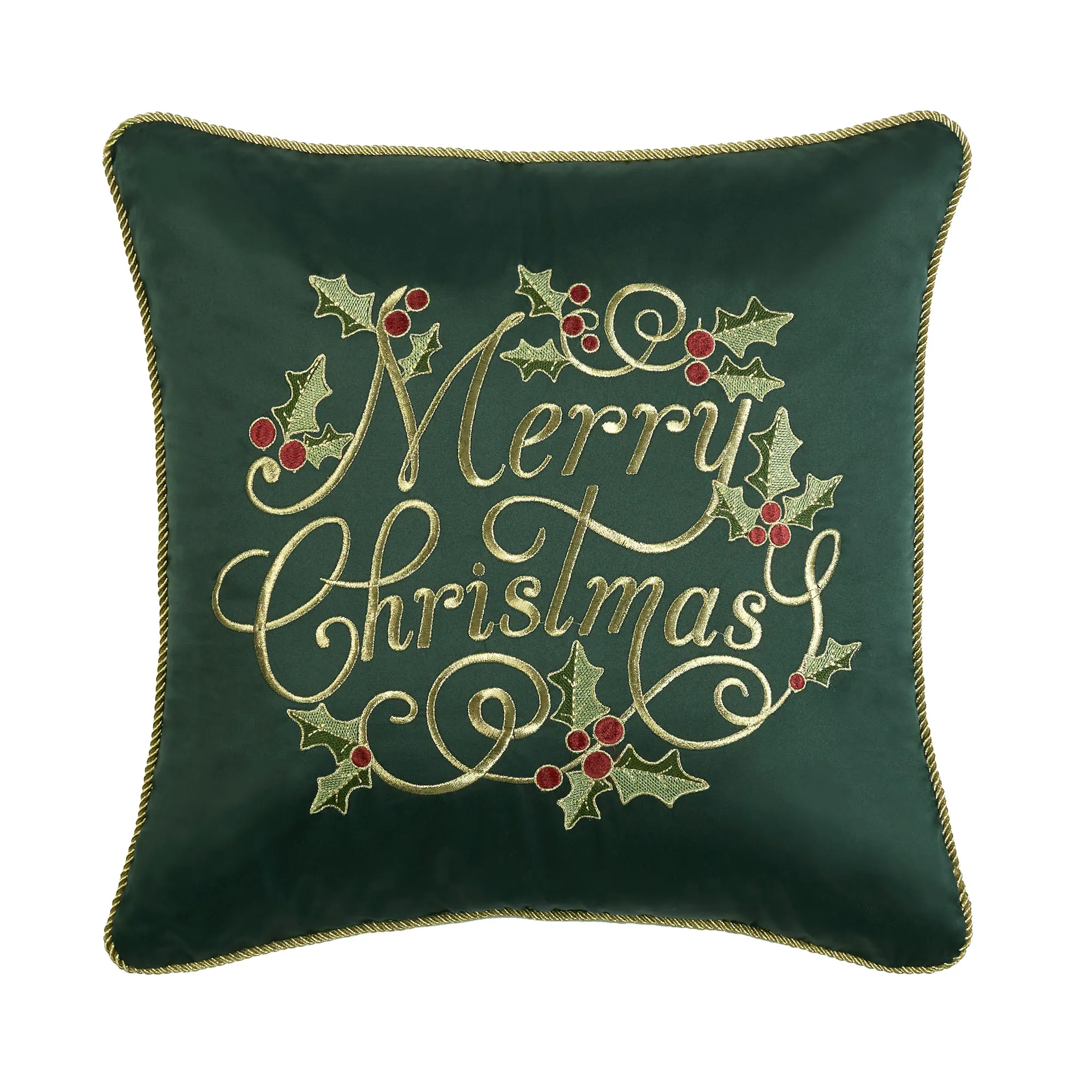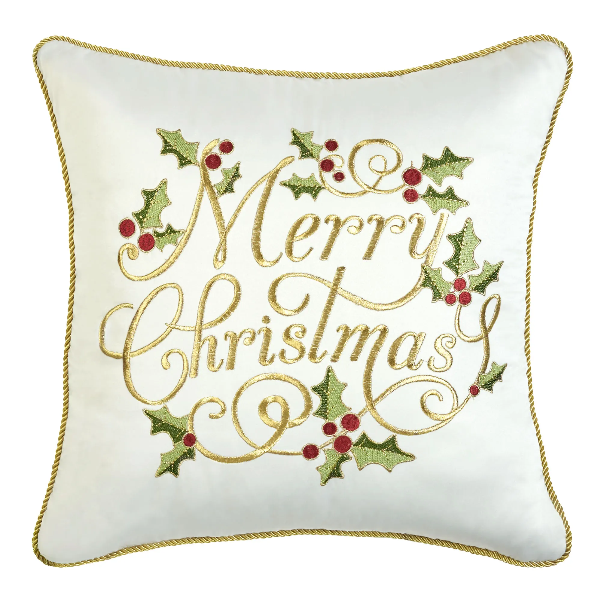 Camelot Embroidered Merry Christmas Decorative Pillow