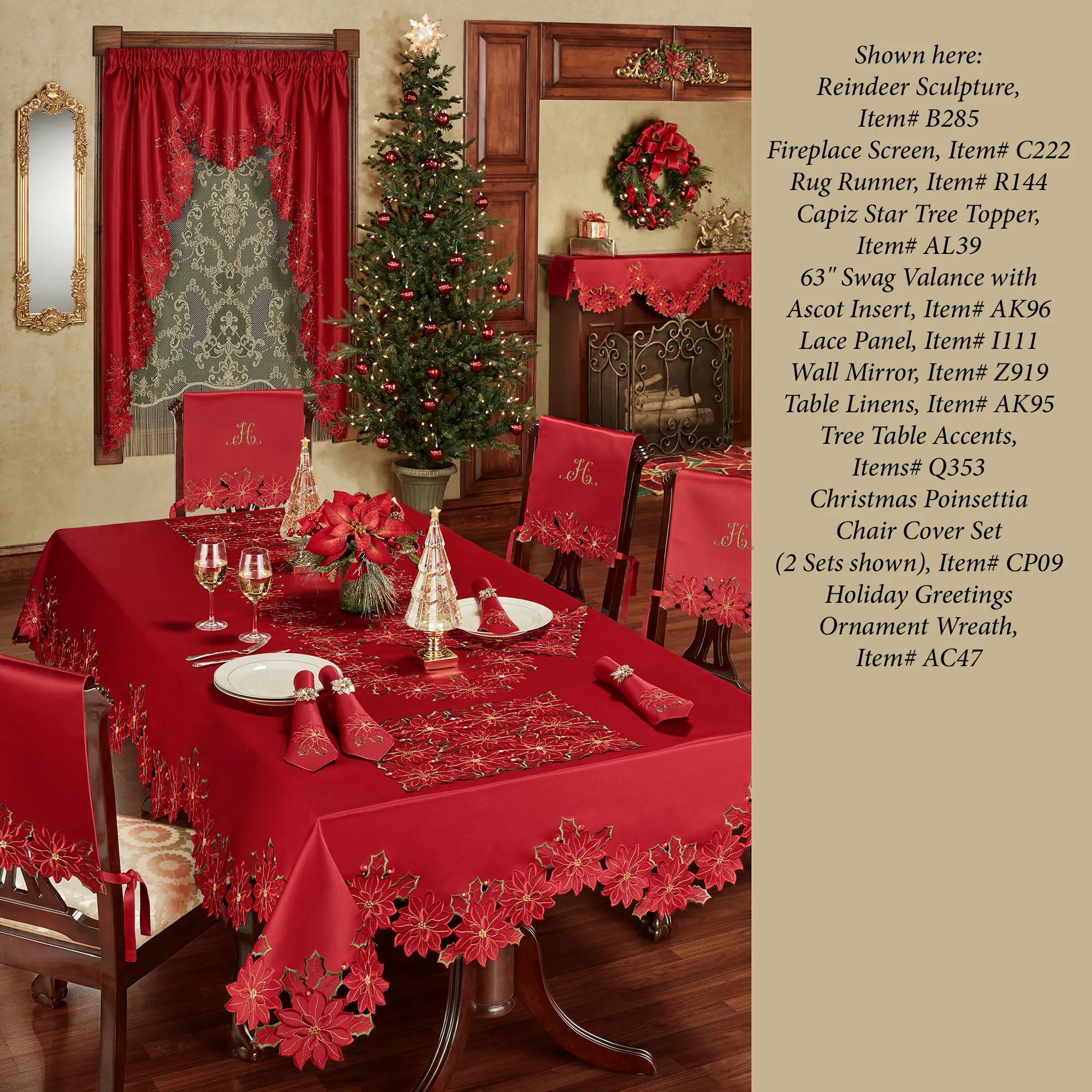 Christmas Poinsettia Red Cutwork Chair Cover Set of 2
