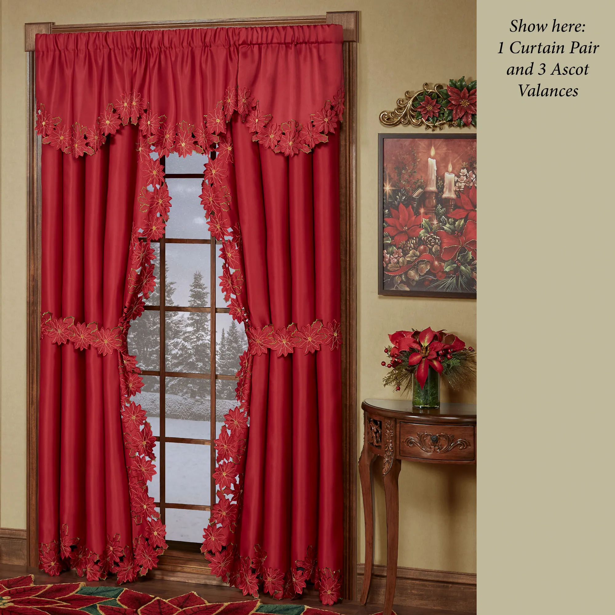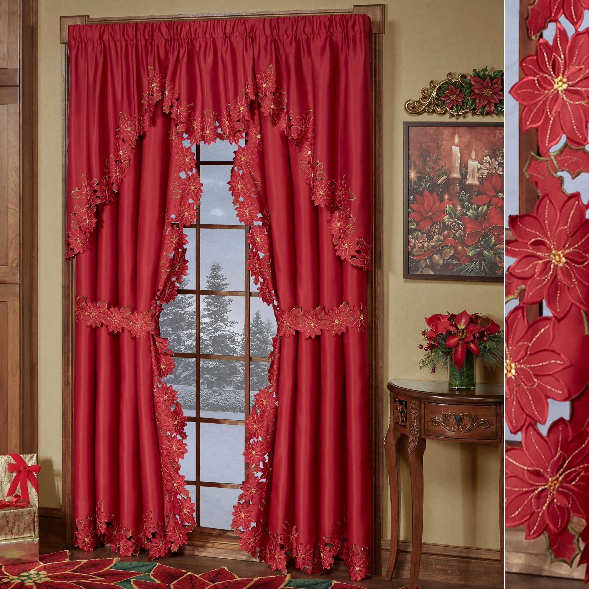 Christmas Poinsettia Red Cutwork Swag Window Treatment