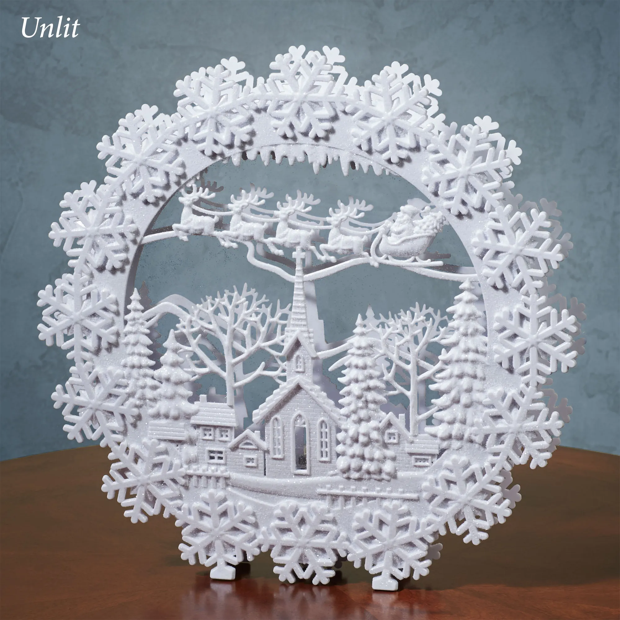 • Features Santa, reindeer, and a church