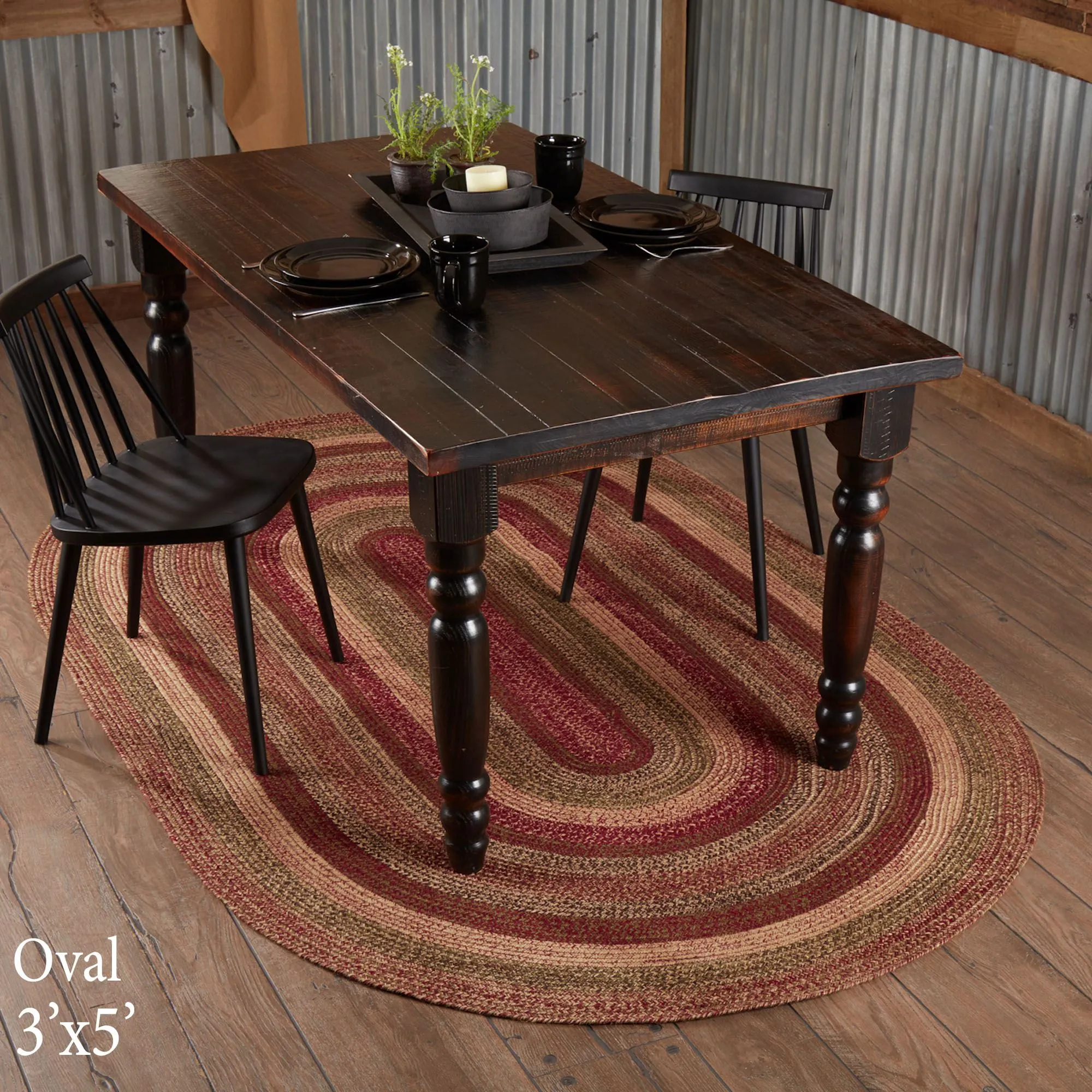 Cider Mill Farmhouse Style Braided Oval Rug with Included Rug Pad