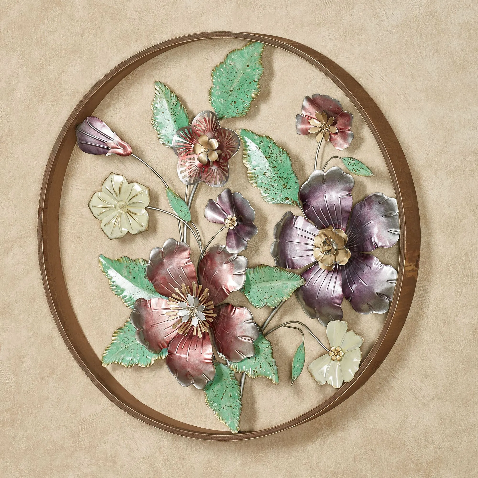 The Circle of Blooms Floral Wall Art is metal with a wooden frame.