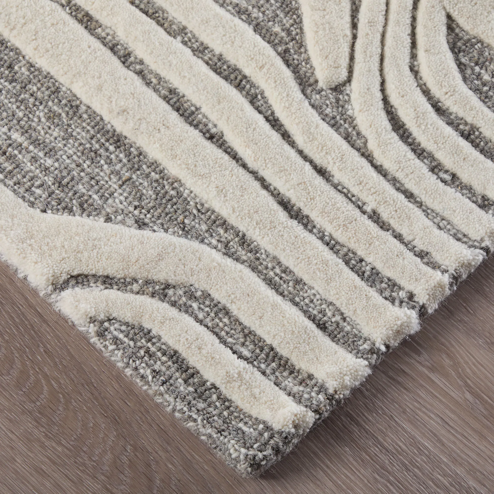 Ciro Ivory and Gray Abstract Hand Hooked Wool Area Rugs