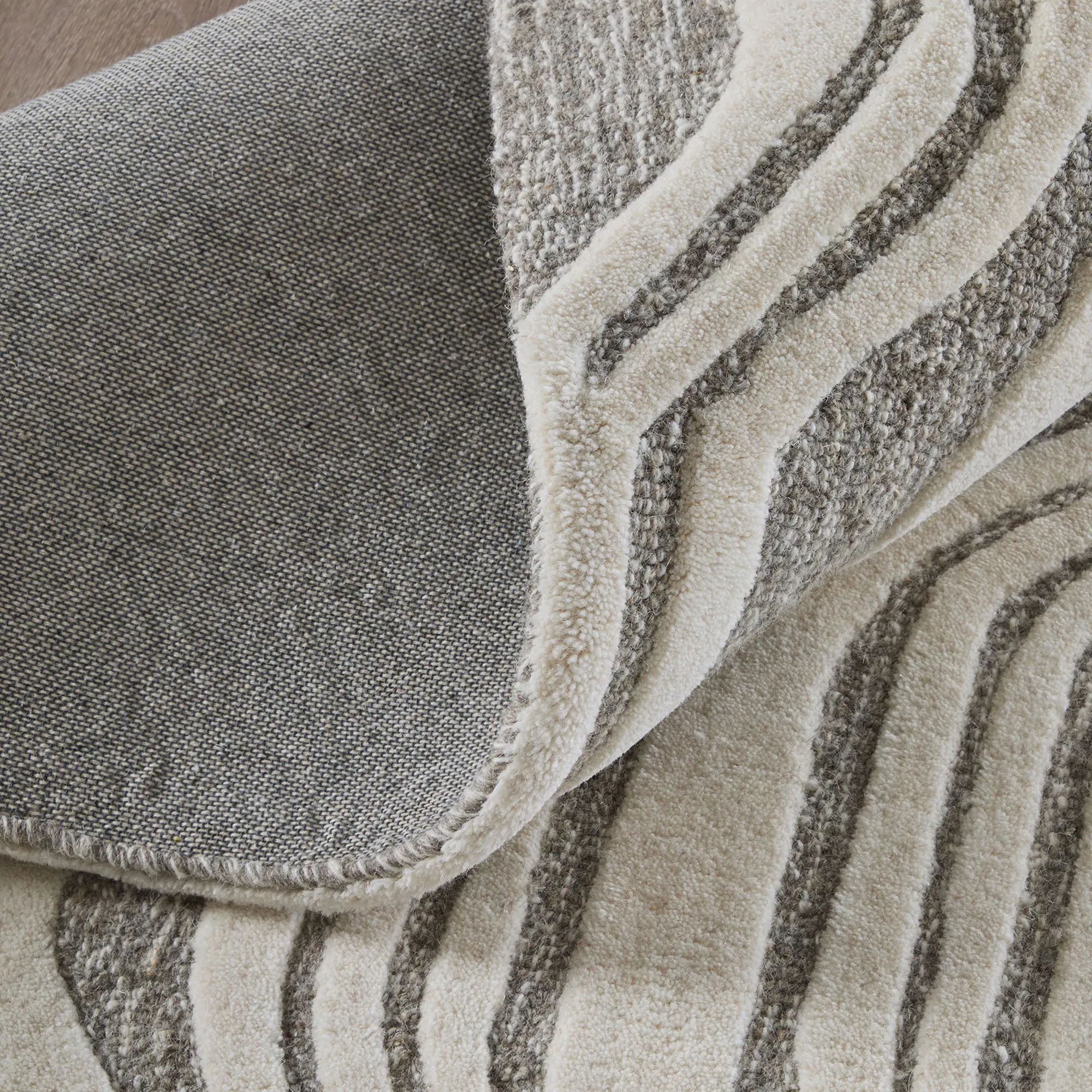Inspired by modern circuitry, the Ciro Rug provides bold style with a contemporary edge. Hand-hooked from wool, the .67" thick rug features undulating, flowing abstract designs that pop from the background in a hi-low textured pile. The ivory, off-white, and gray tones create a neutral color palette to complement a variety of spaces. Backing is cotton. We recommend professional cleaning by a rug cleaner. Imported.