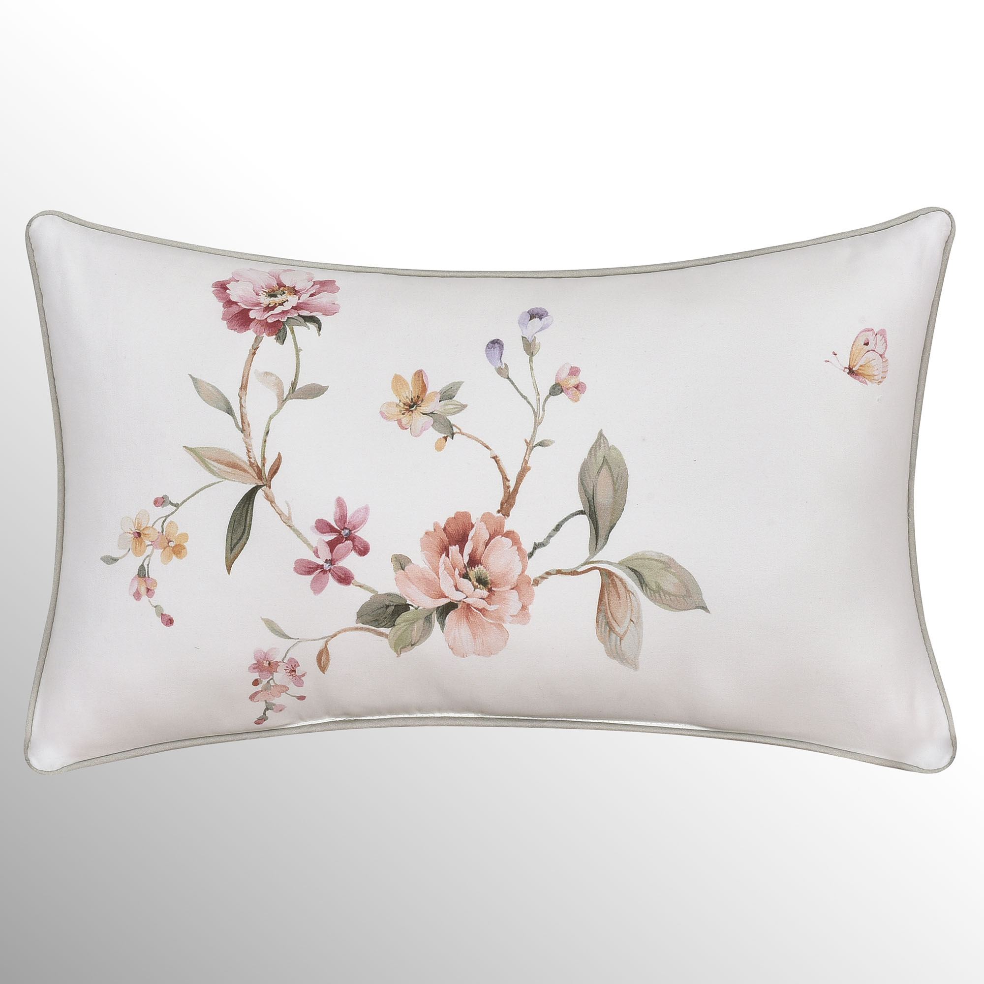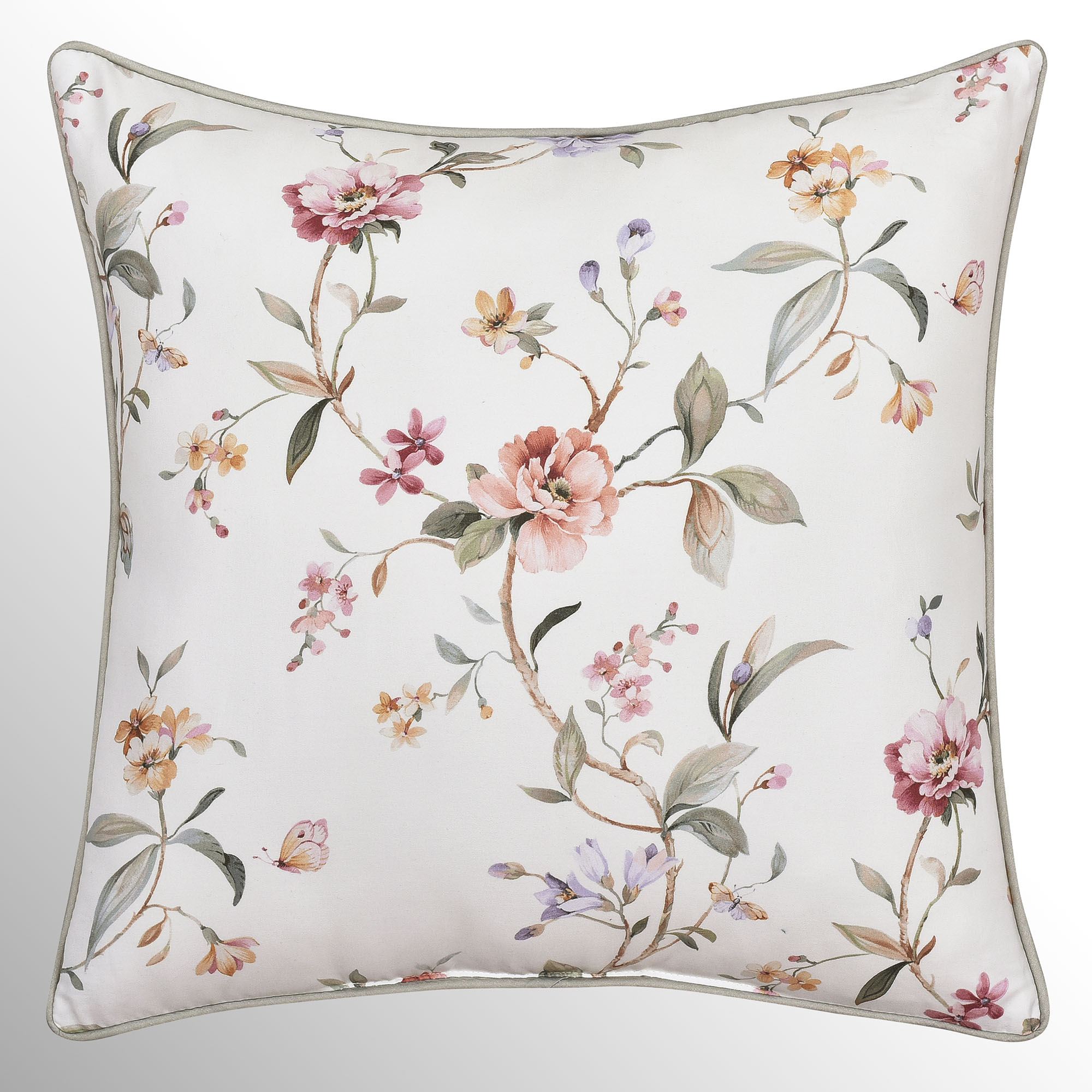 • Ivory bedding features vining floral branches