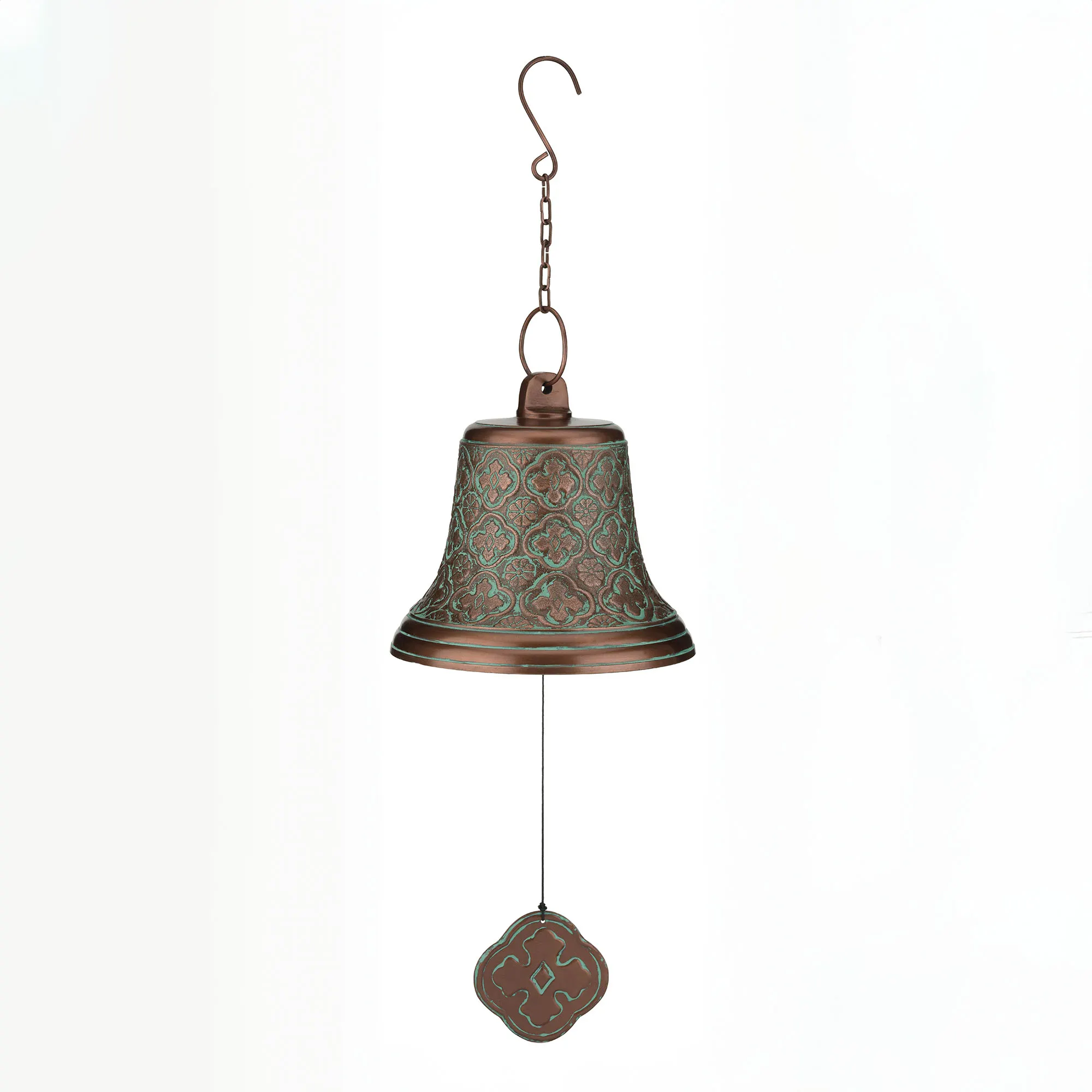 Classic Copper and Verdi Finished Embossed Metal Hanging Outdoor Wind Bell