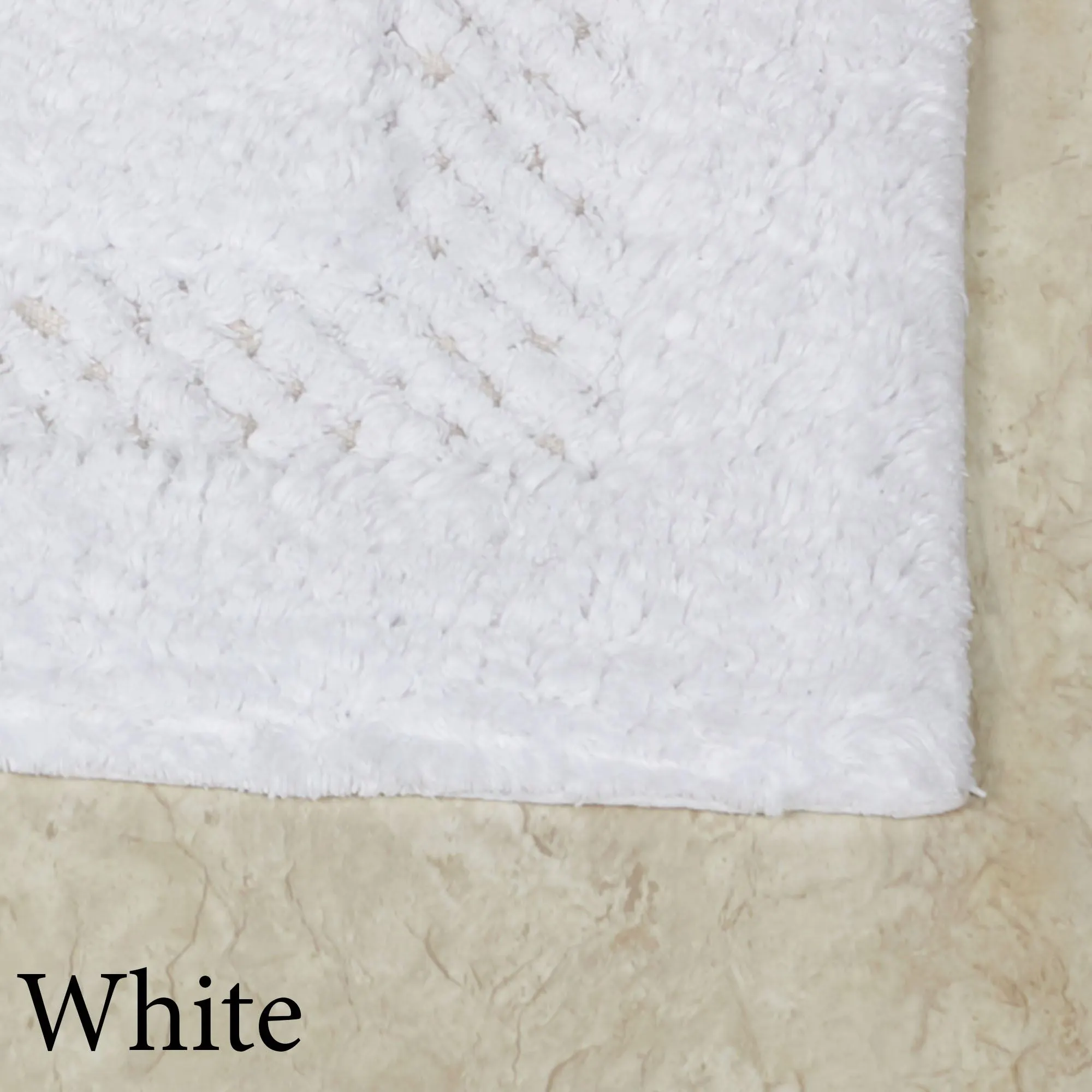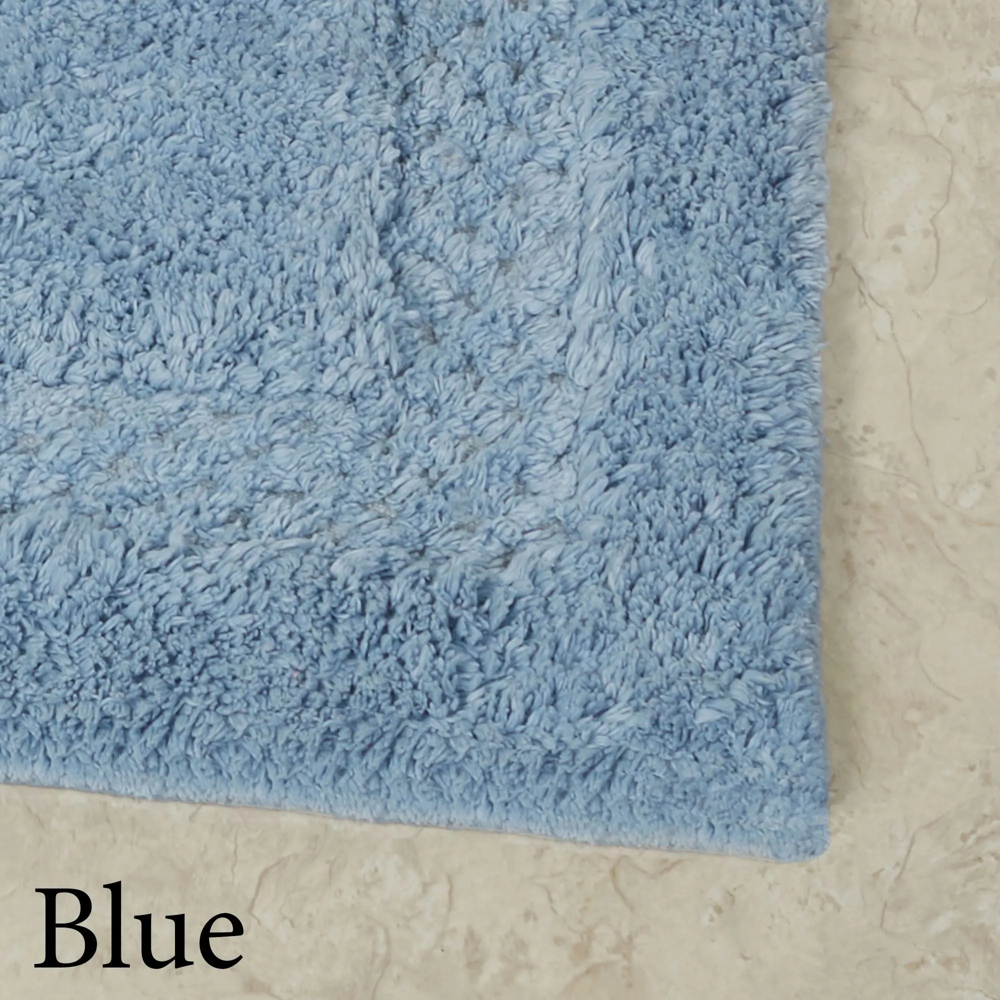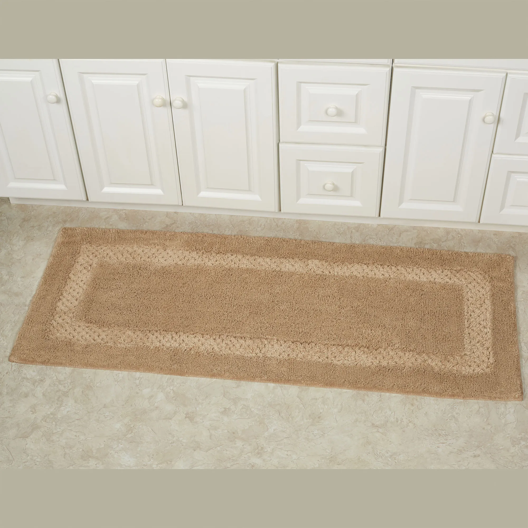 Step out of the shower or bath onto the Classy Bath Rug Runner. This plush cotton bath rug is a solid color with a frame design. Slip-resistant backing is spray latex. Runner is 54"x21". Machine washable. Imported.