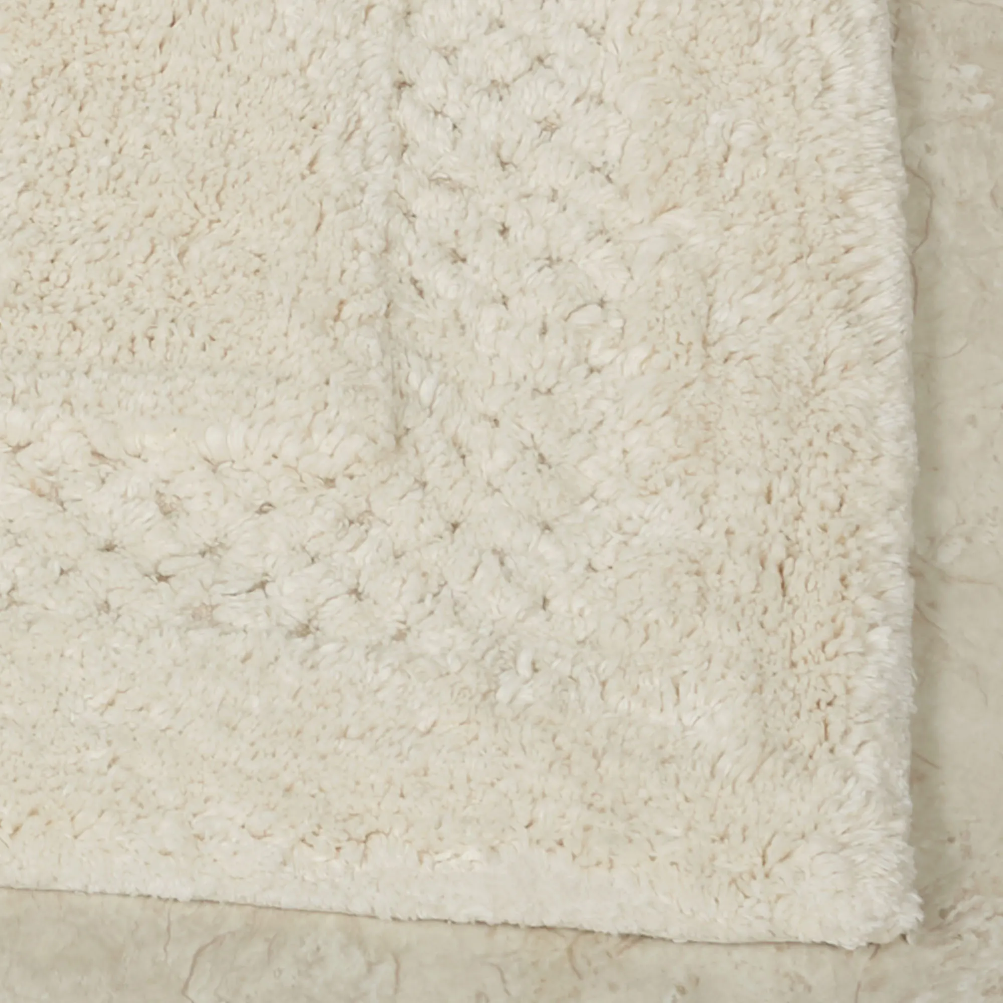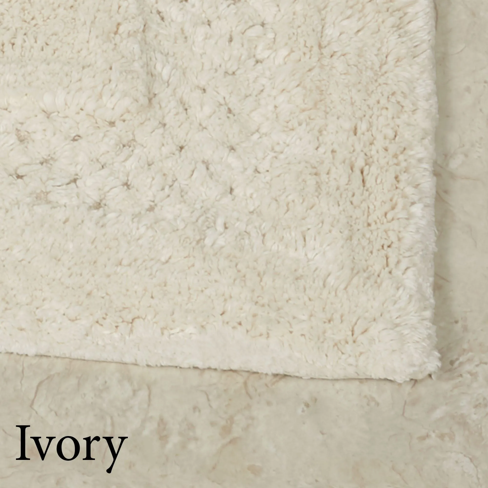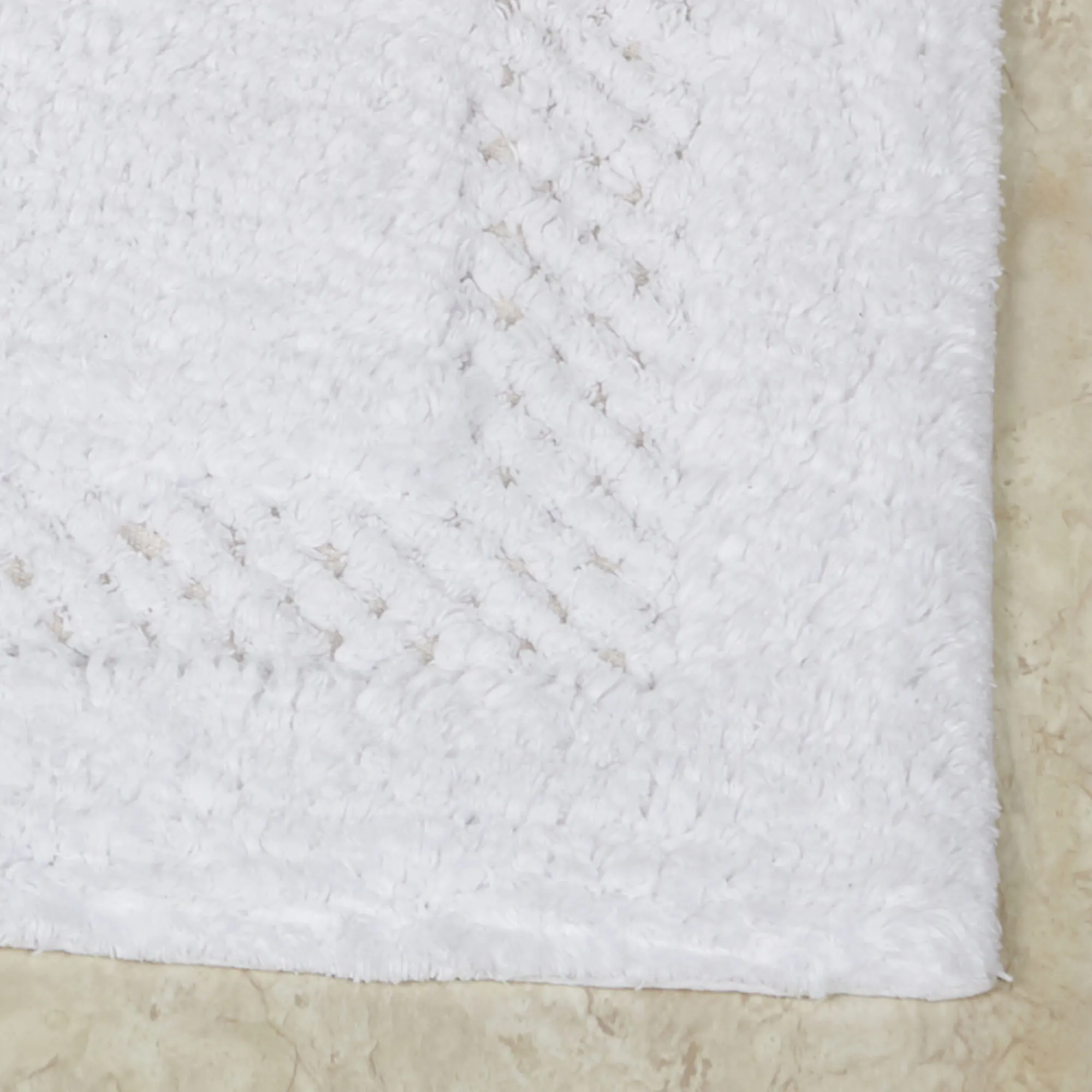 Step out of the shower or bath onto the Classy Bath Rug Runner. This plush cotton bath rug is a solid color with a frame design. Slip-resistant backing is spray latex. Runner is 54"x21". Machine washable. Imported.