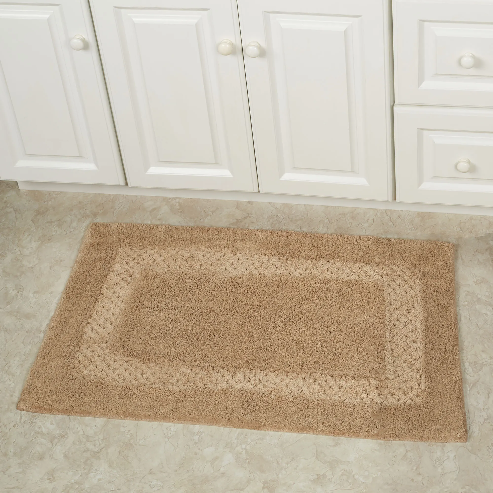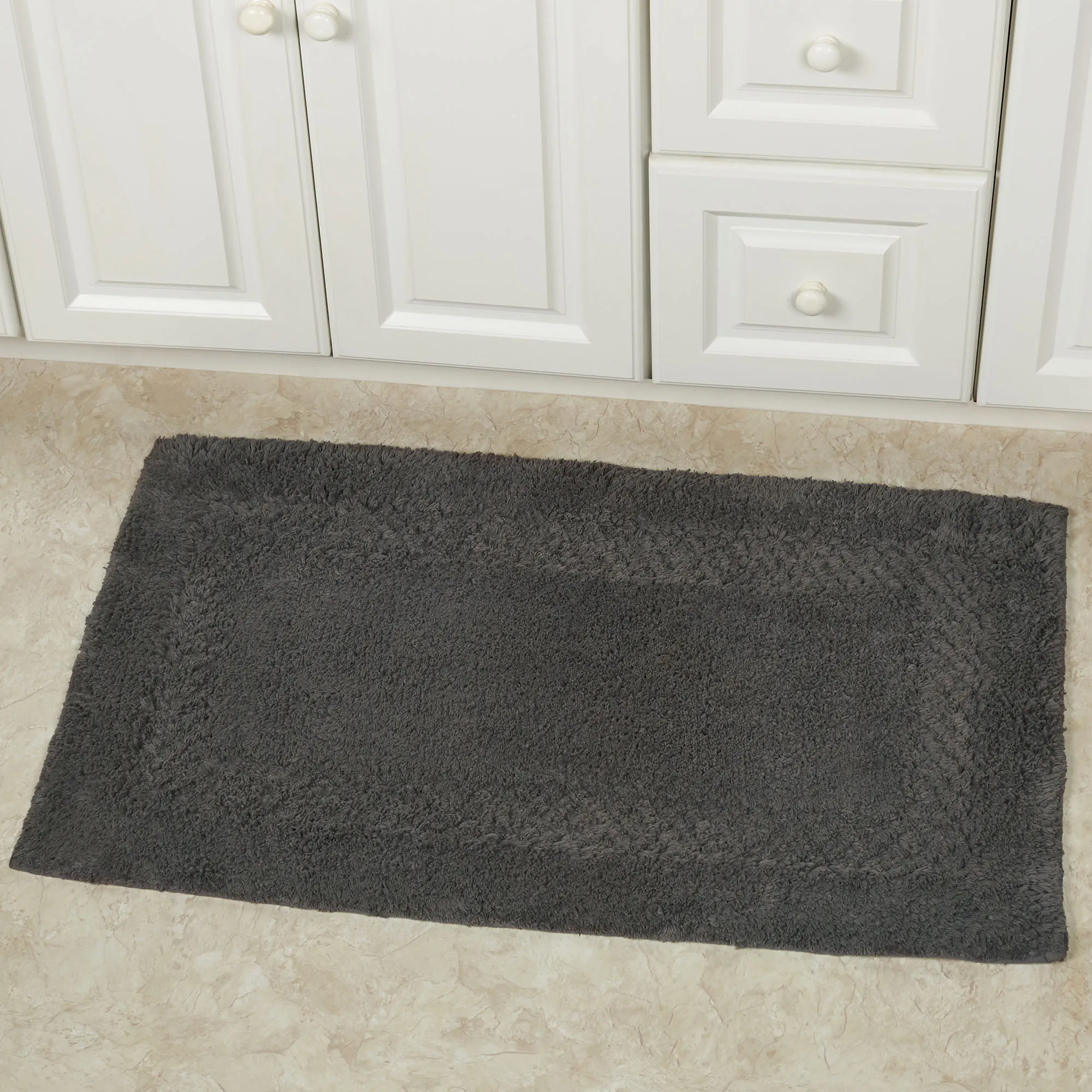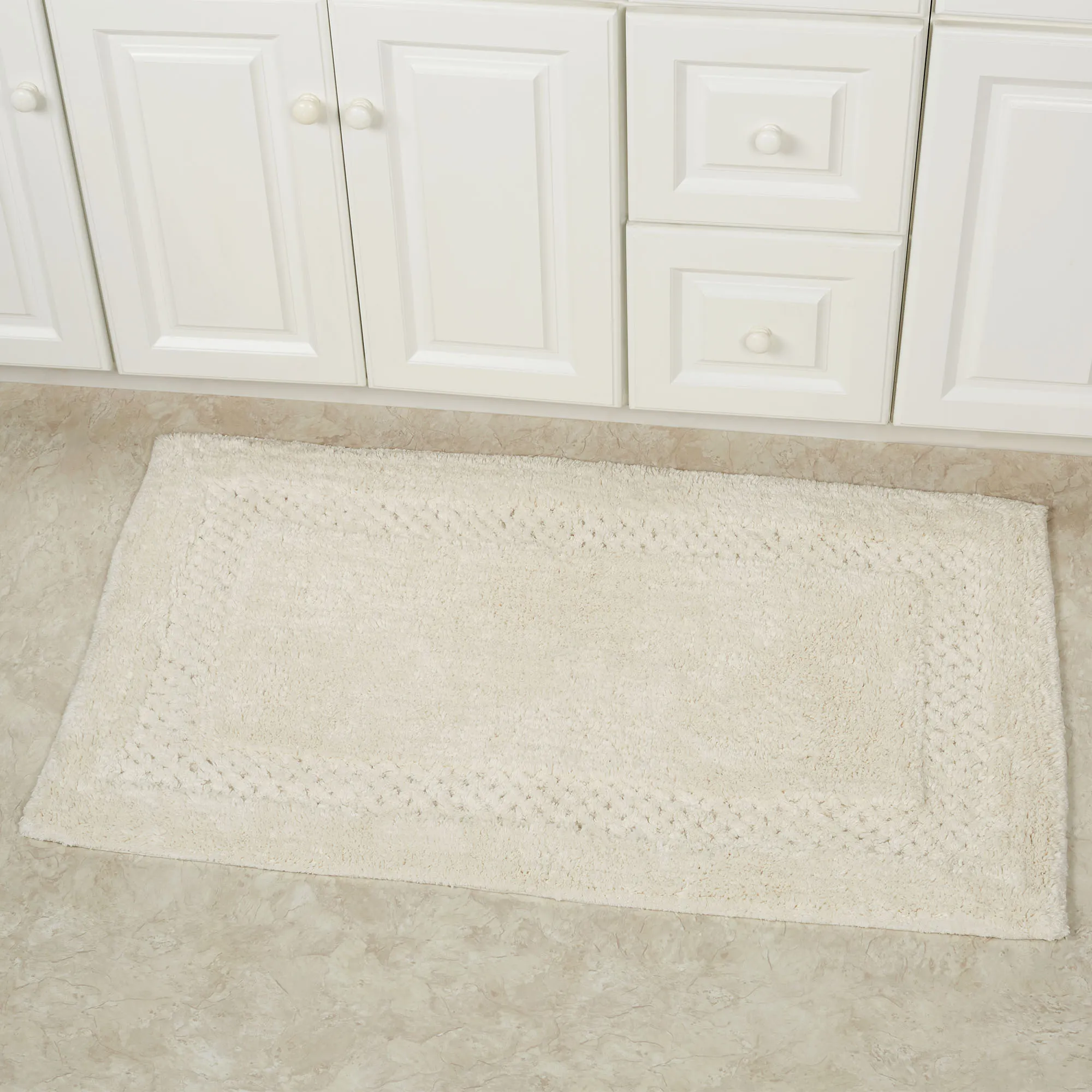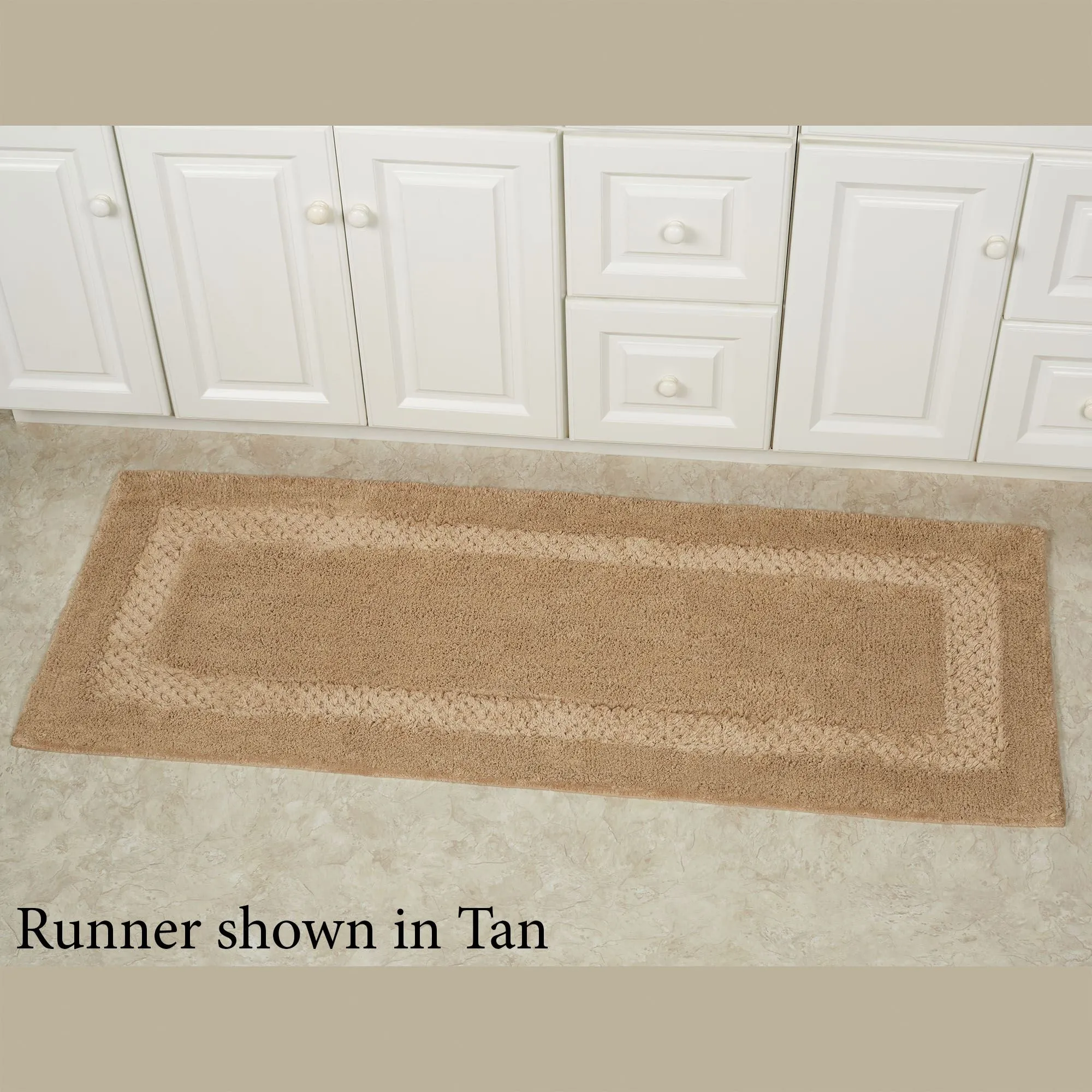 Step out of the shower or bath onto the Classy Bath Rug. This plush cotton bath rug is a solid color with a frame design. Slip-resistant backing is spray latex. Rectangle Rug is available in two sizes. Runner is 54"x21". Machine washable. Imported.