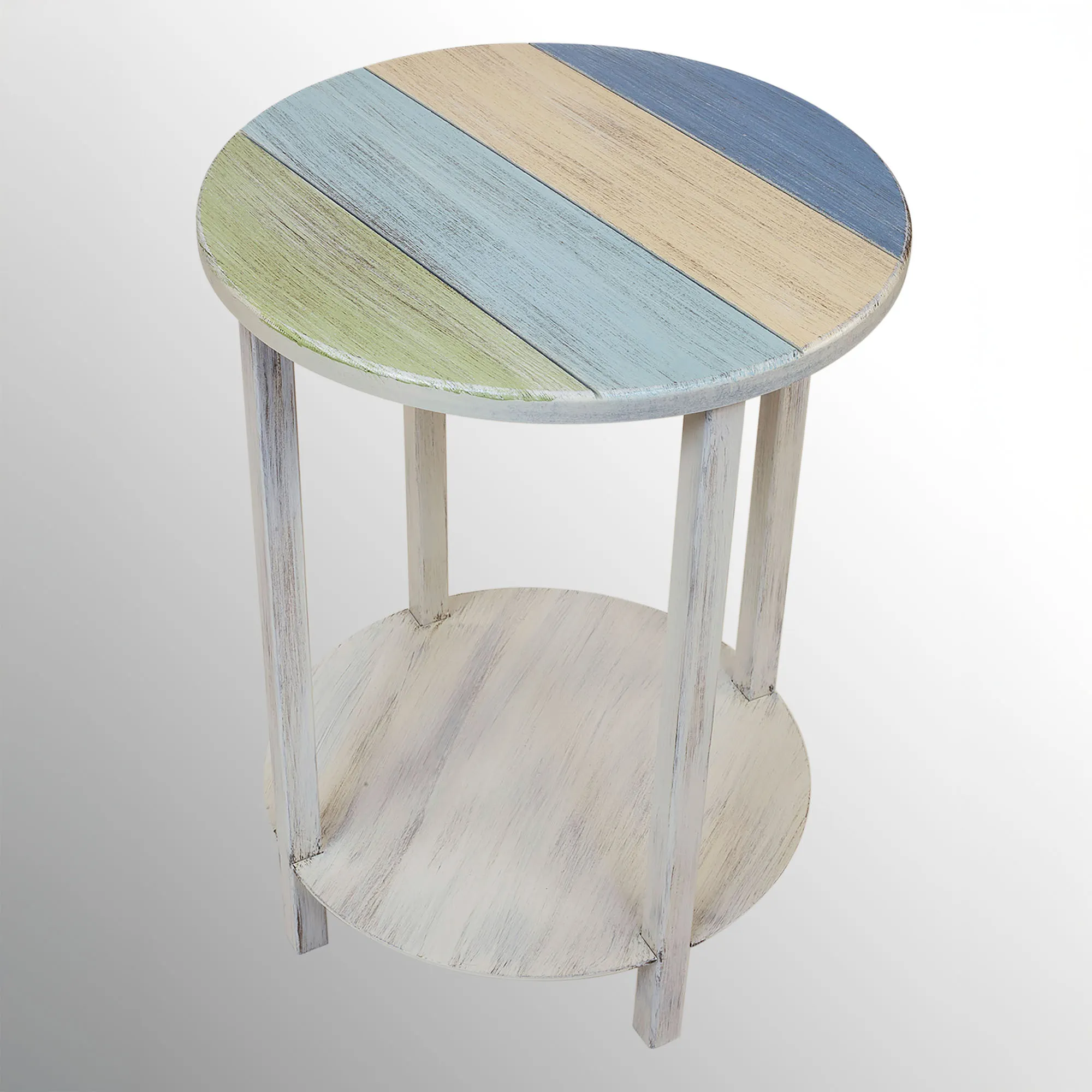 Clearwater Handcrafted Round Coastal Accent Table with Plank Style Wooden Top