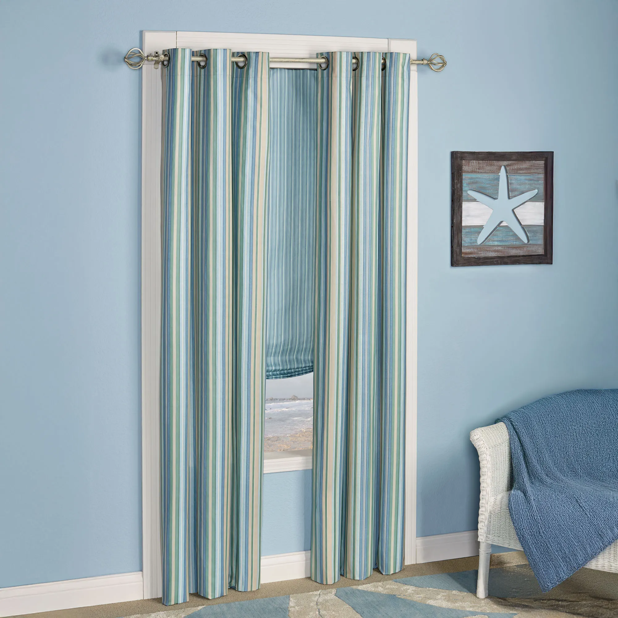 Clearwater Coastal Striped Grommet Curtains