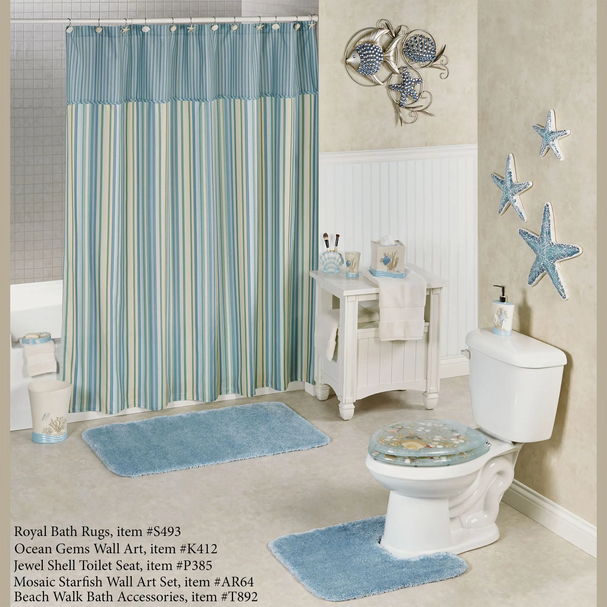 Adorn your bathroom with the Clearwater Coastal Striped Shower Curtain, a design that infuses any space with a breath of coastal elegance. With multicolor pastel stripes in serene shades of vanilla, ivory, spring green, glacier, jade, blue shadow, and light blue, this shower curtain transforms your bath area into a tranquil retreat. The bath accent features a pieced top adorned with mini stripes, enhancing its visual appeal. Crafted from brushed polyester microfiber, this shower curtain promises both style and durability.