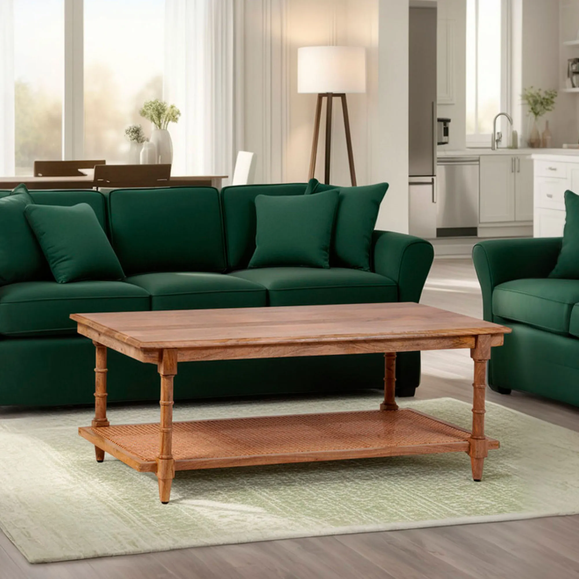 Clifton Cane Natural Hued Handcrafted Mango Wood Coffee Table