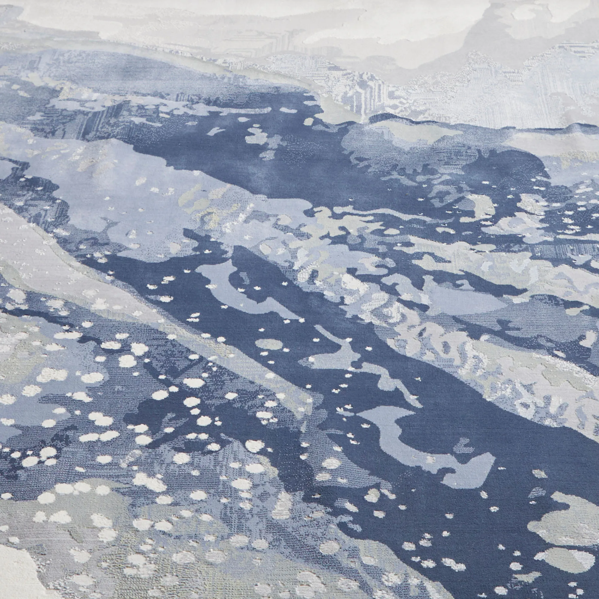 The Clio Blue Abstract Rug is a polypropylene/polyester blend. Imported.