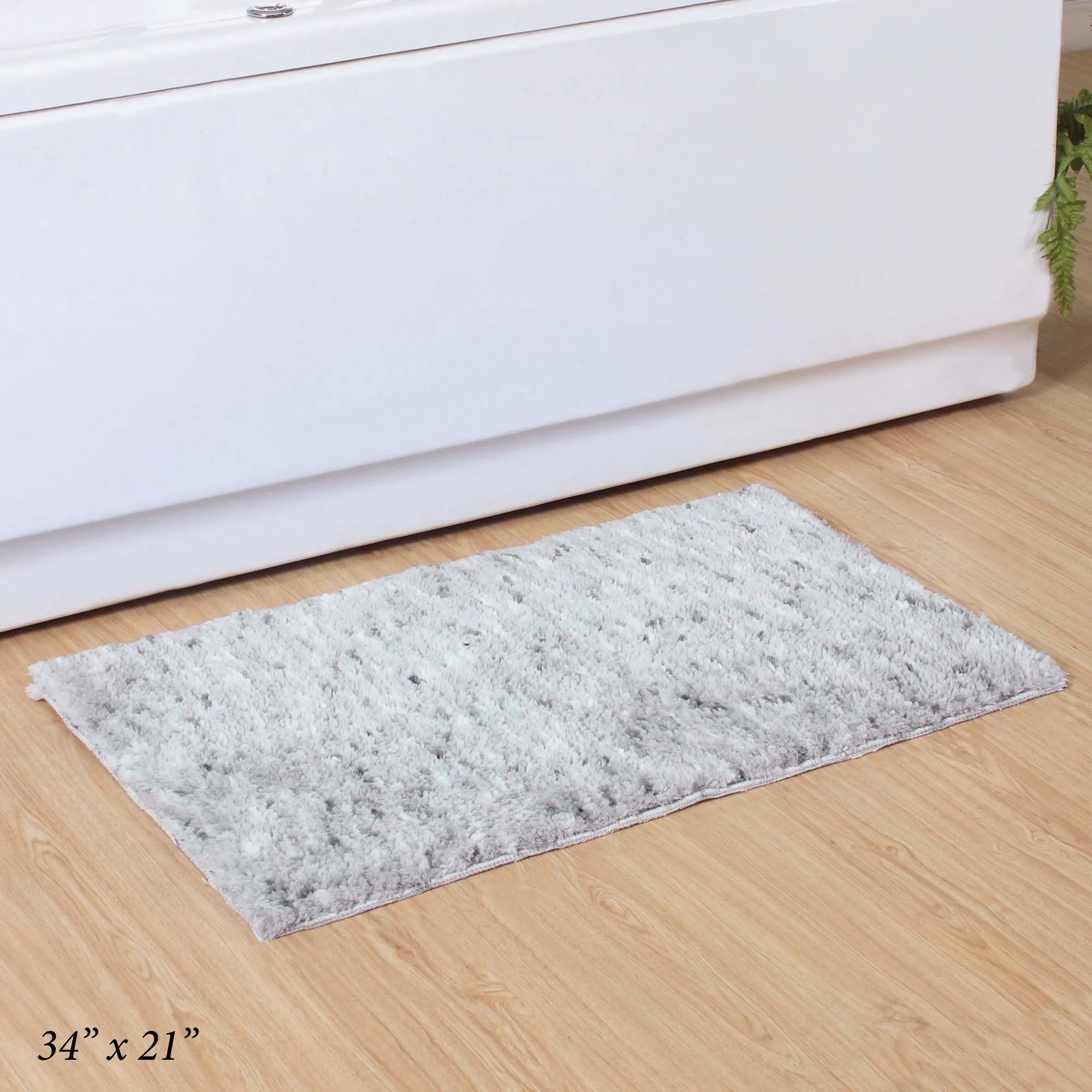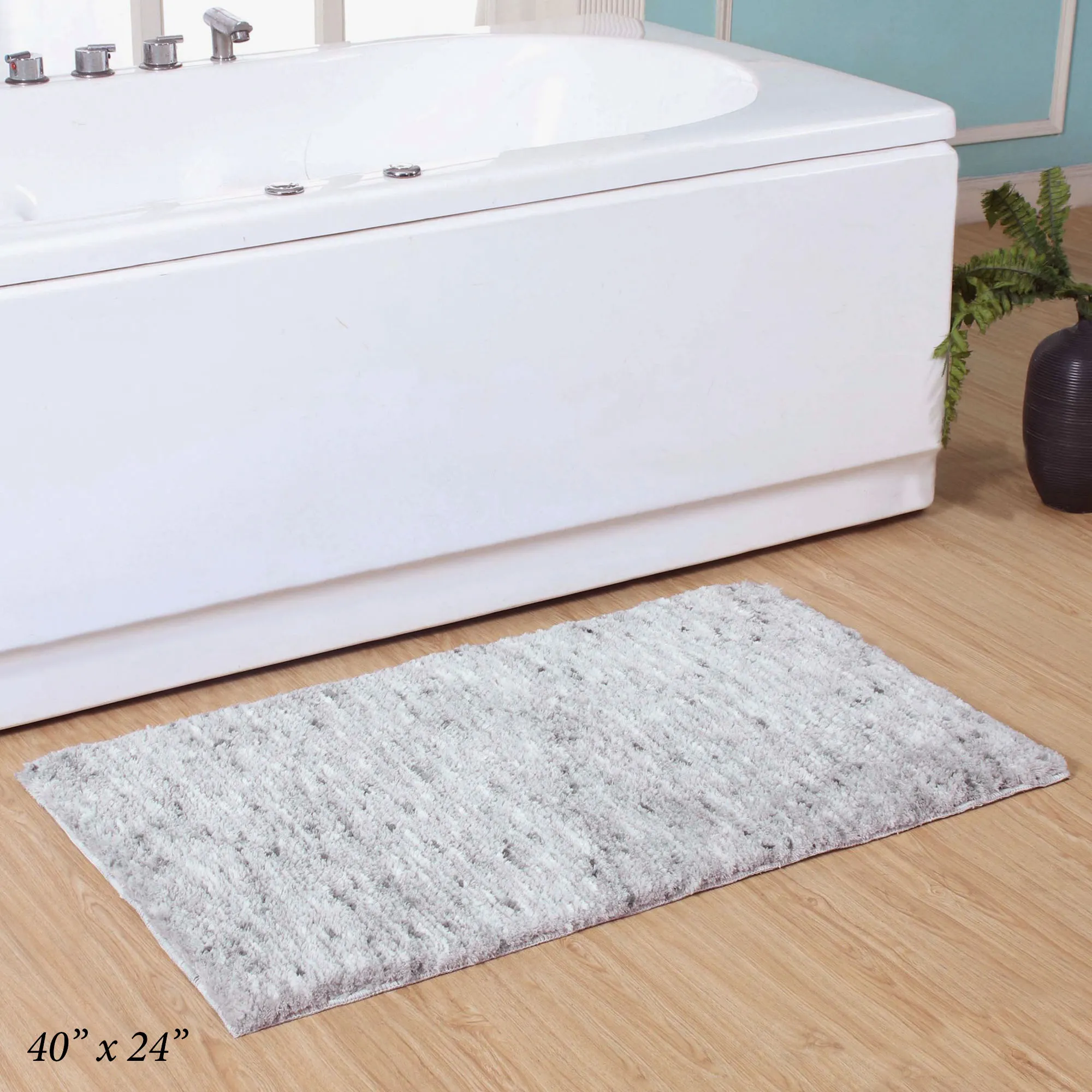 Step on the Cloud Comfort Gray Bath Rug and enjoy the supreme softness underfoot. This polyester microfiber, plush rug, .5" thick, has a mingled design and an anti-slip thermoplastic rubber backing. Bath Rug Runner is 60"x22". Rectangle Bath Rug is available in three sizes. Machine washable. Imported.