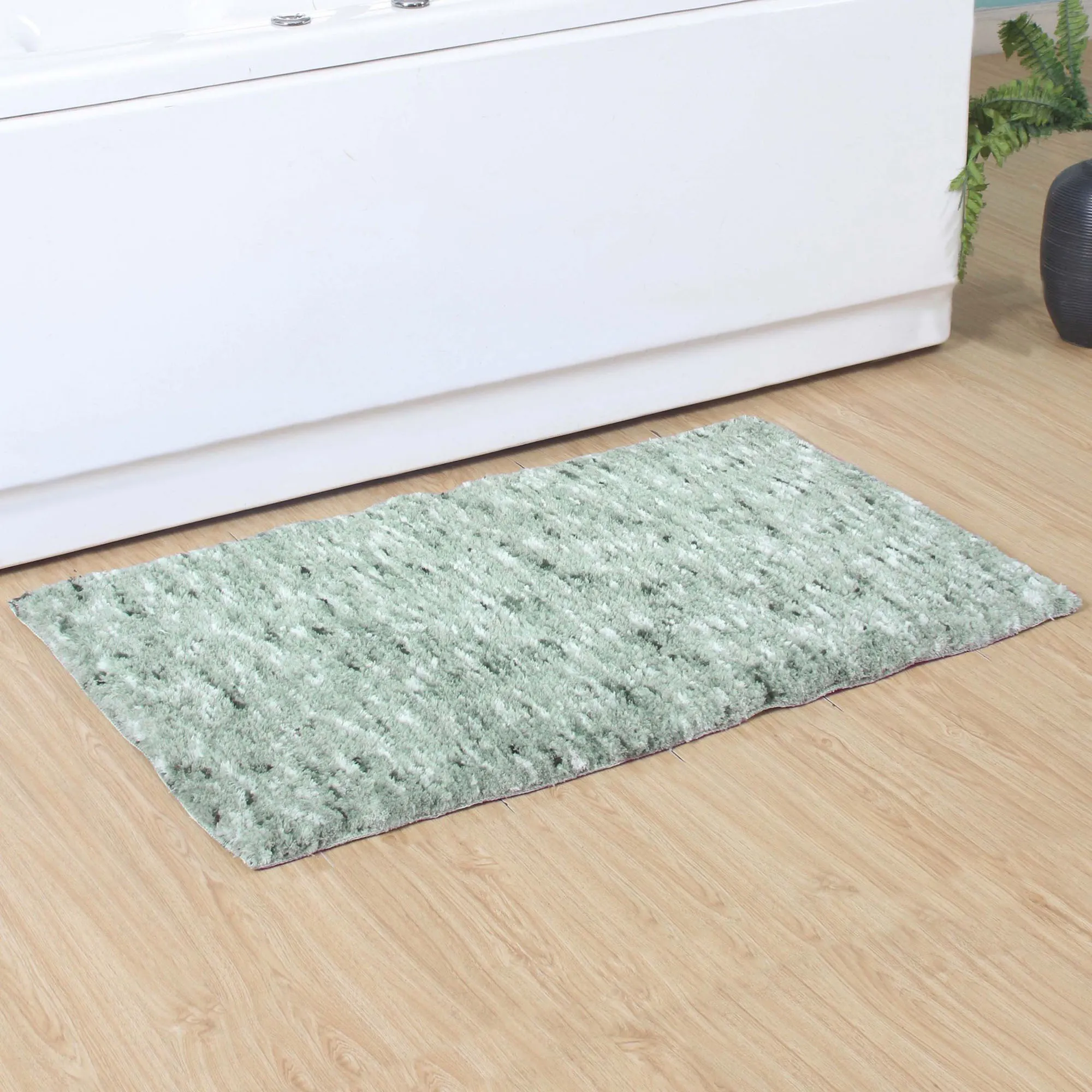 Step on the Cloud Comfort Green Bath Rug and enjoy the supreme softness underfoot. This polyester microfiber, plush rug, .5" thick, has a mingled design and an anti-slip thermoplastic rubber backing. Rectangle Bath Rug is available in three sizes. Bath Rug Runner is 60"x22". Machine washable. Imported.