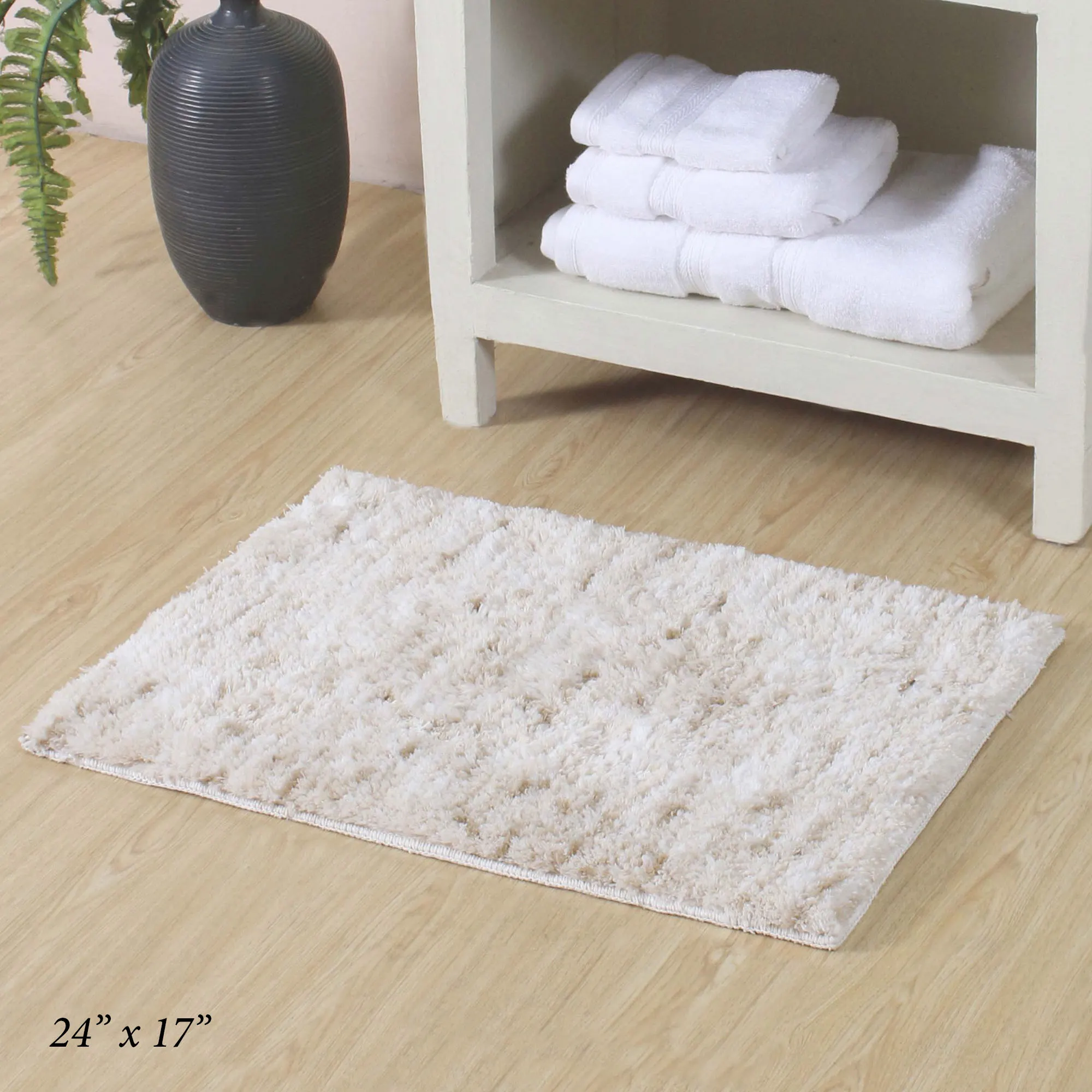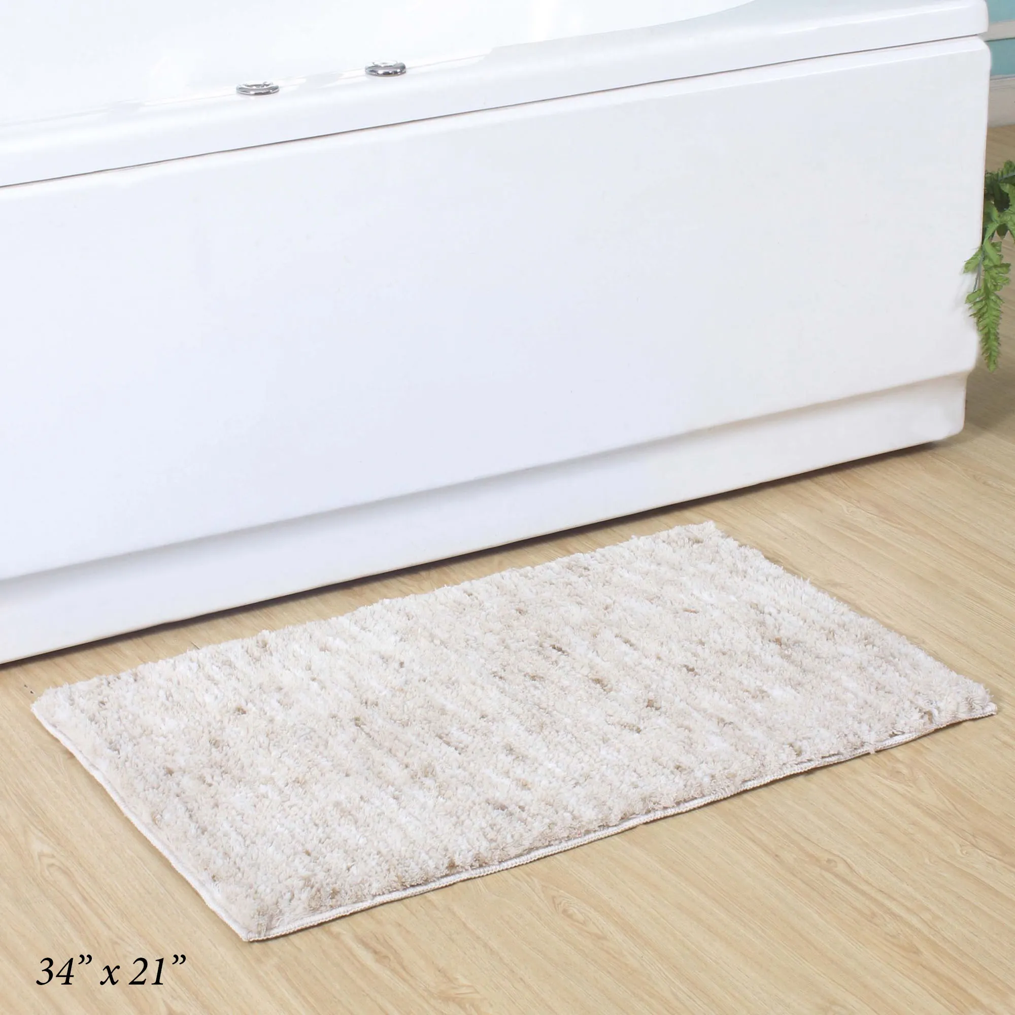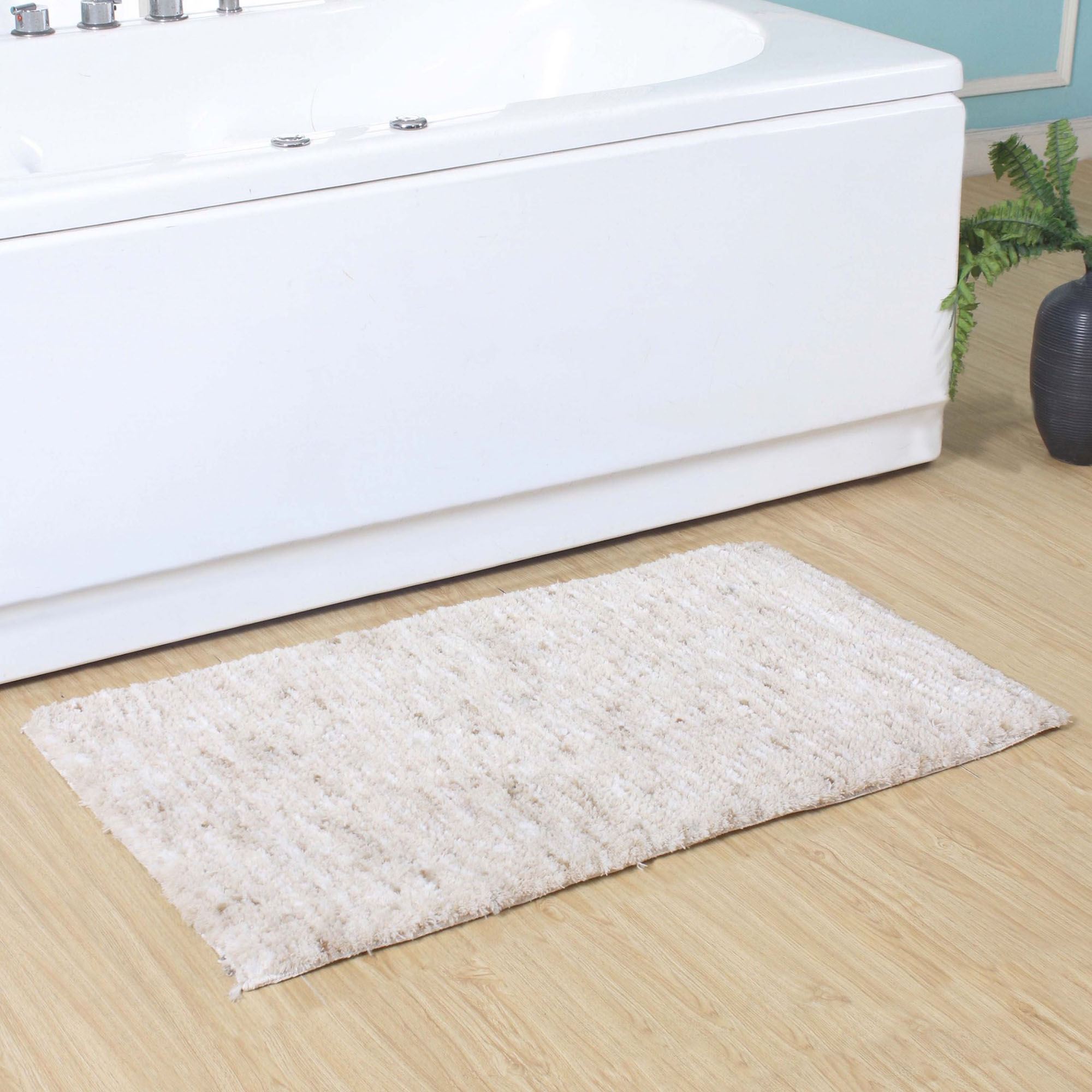 Step on the Cloud Comfort Natural-Hued Bath Rug and enjoy the supreme softness underfoot. This polyester microfiber, plush rug, .5" thick, has a mingled design and an anti-slip thermoplastic rubber backing. Rectangle Bath Rug is available in three sizes. Bath Rug Runner is 60"x22". Machine washable. Imported.