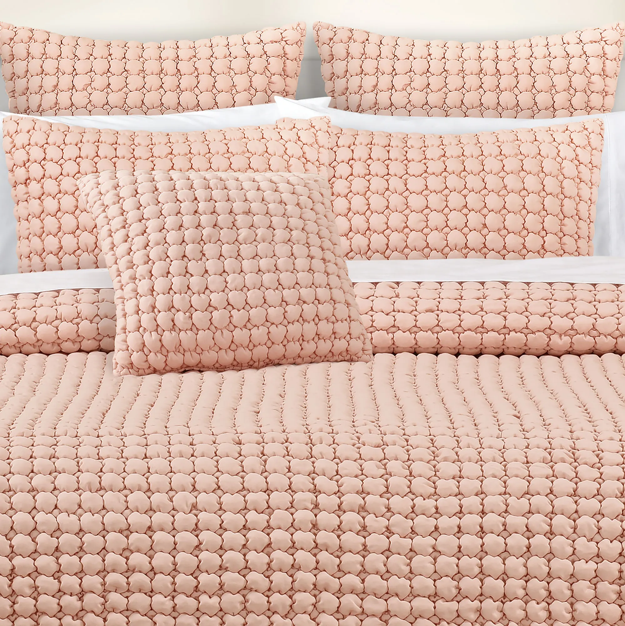 Fluffy as a Cloud Puff, this sumptuous, solid pale blush bedding has a marshmallow-soft feel that will wrap you in ultimate comfort with a cloud-like embrace all year long. This polyester ensemble, from J. Queen Bold, features a unique quilted puff texture.